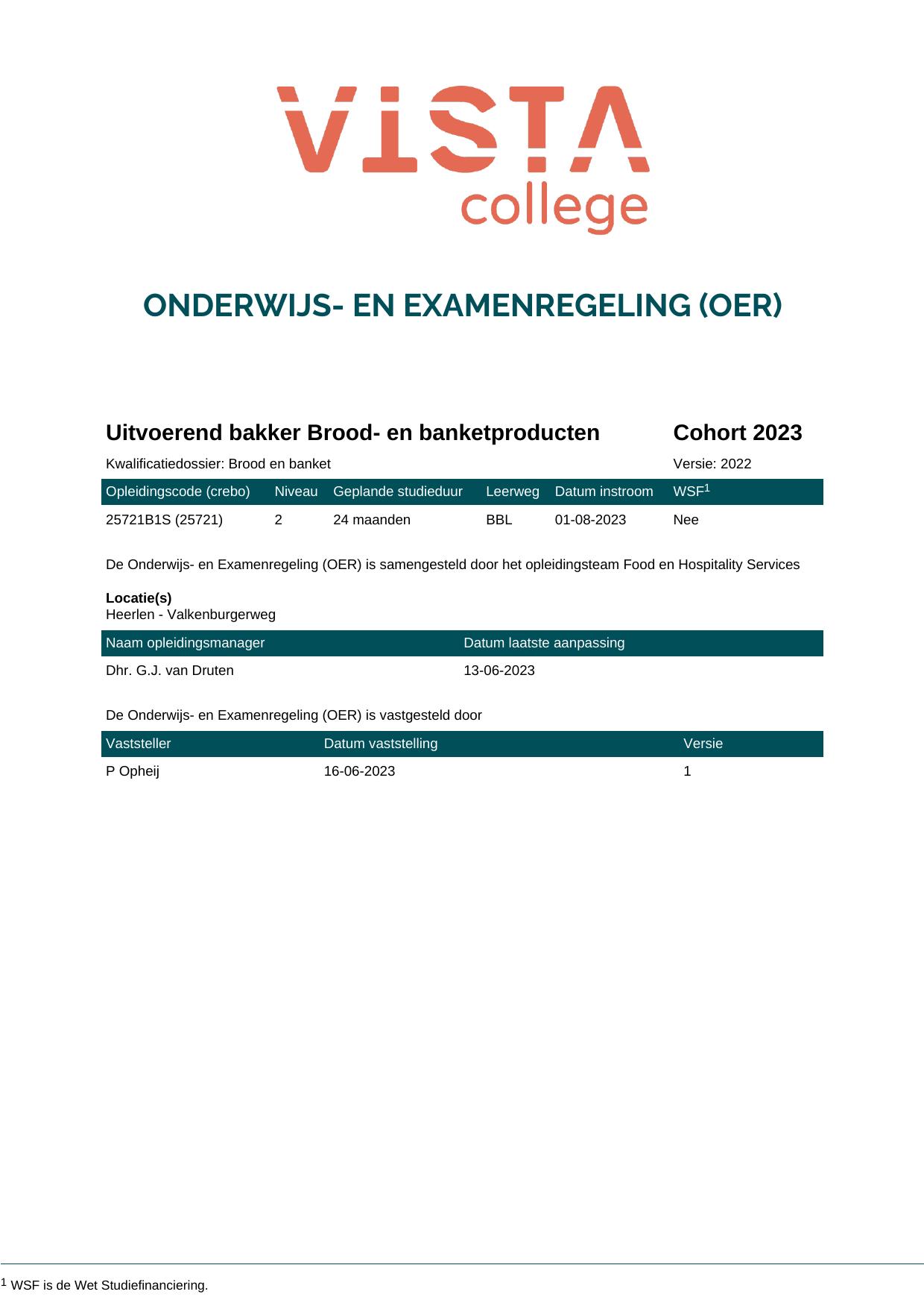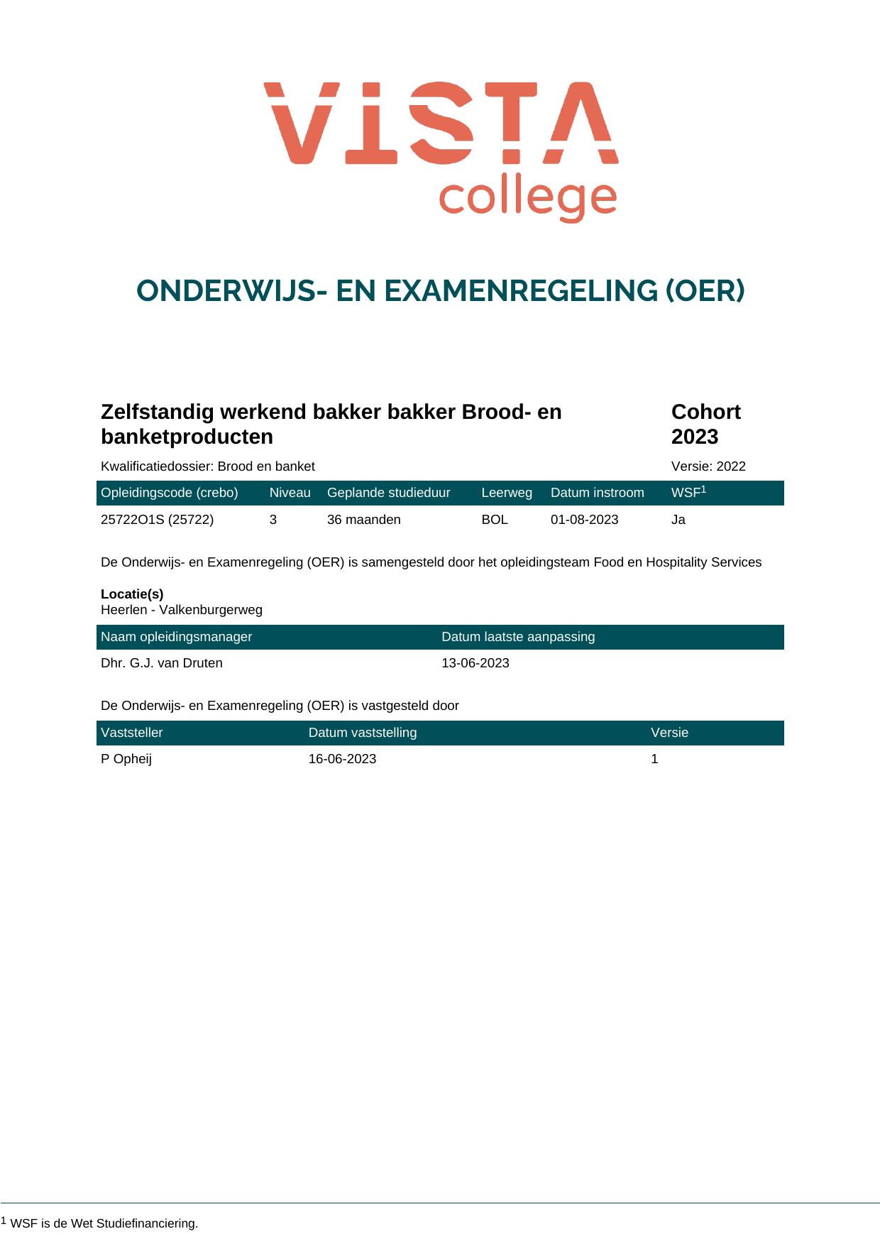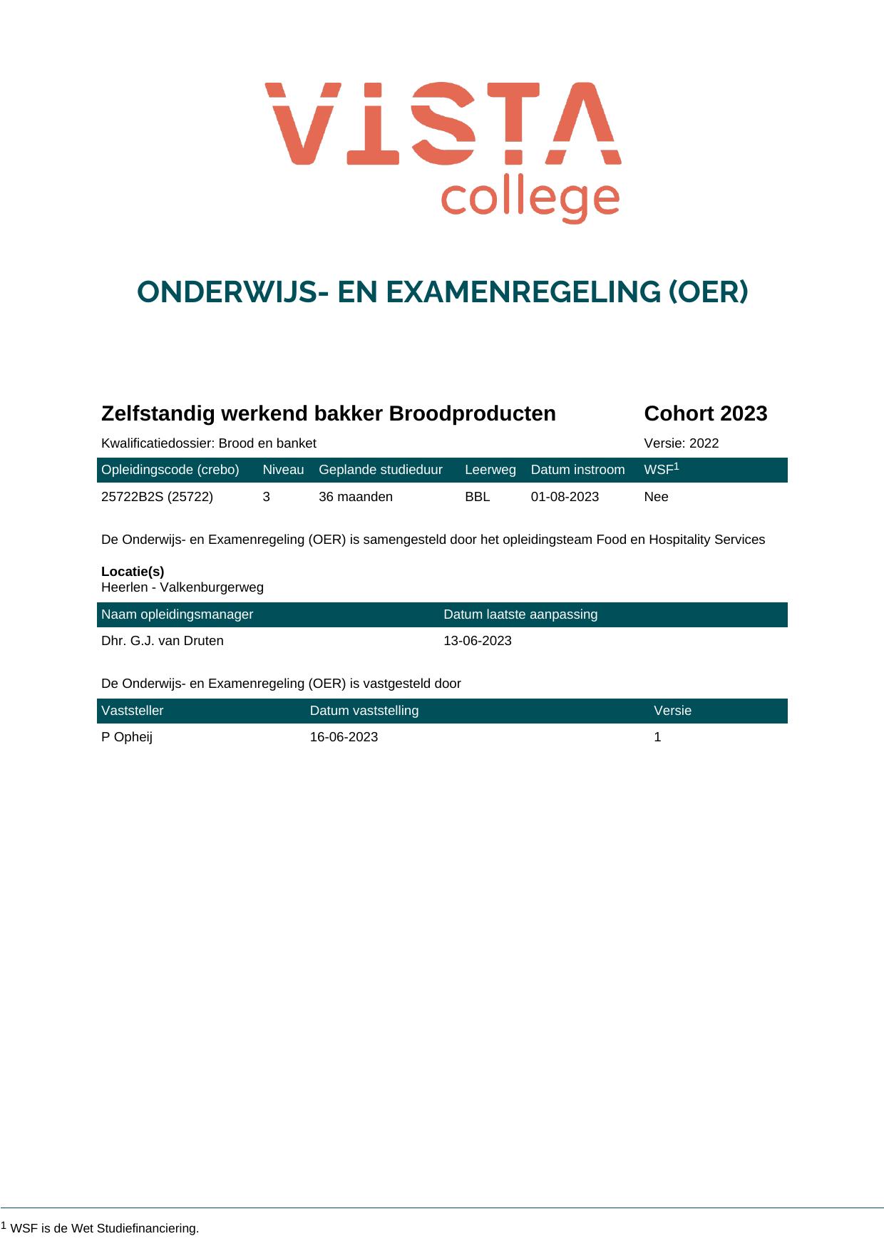 Zelfstandig werkend bakker bakker Brood- en banketproducten 25722O1S in cohort 2023-2024