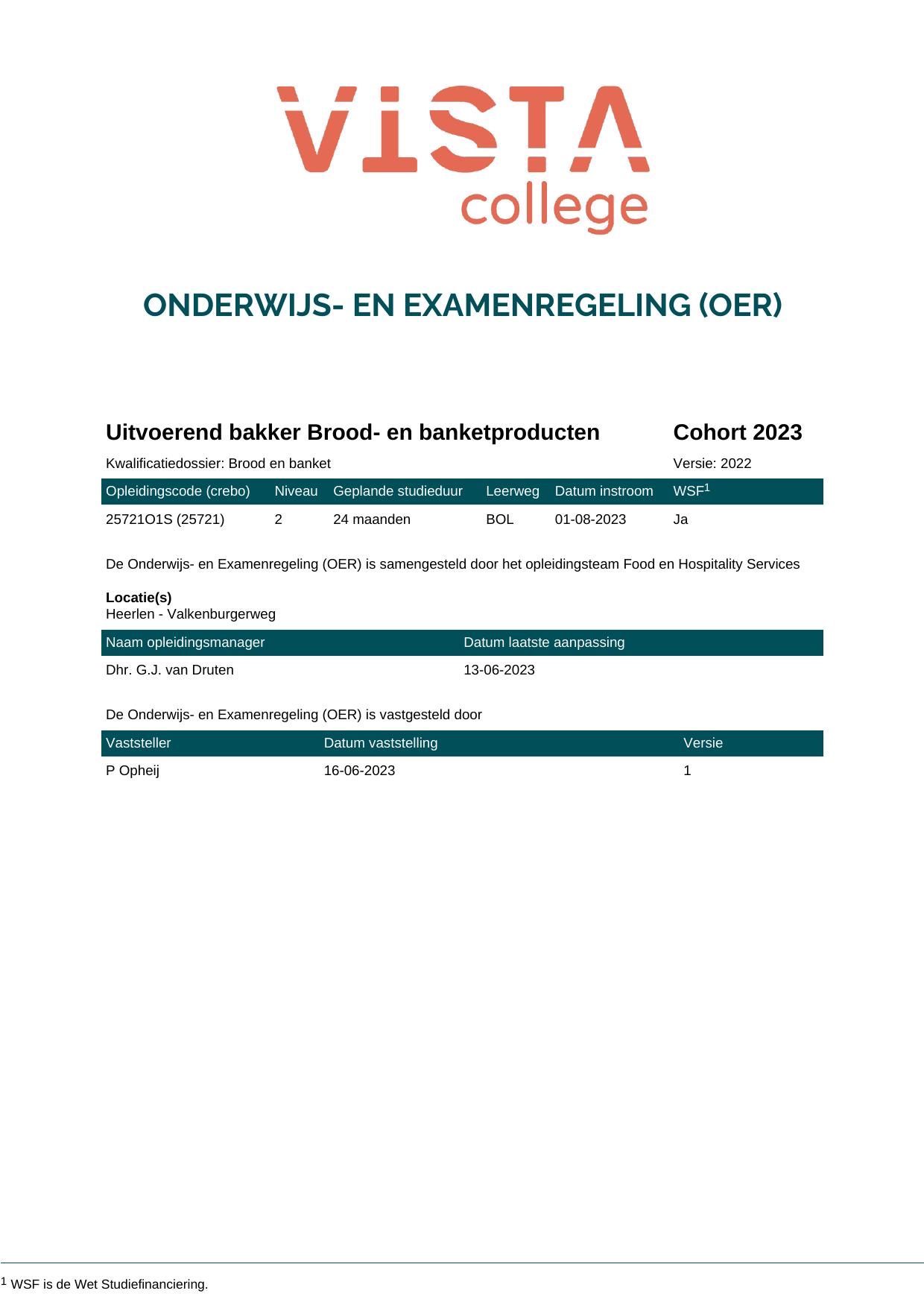 Uitvoerend bakker Brood- en banketproducten 25721O1S in cohort 2023-2024