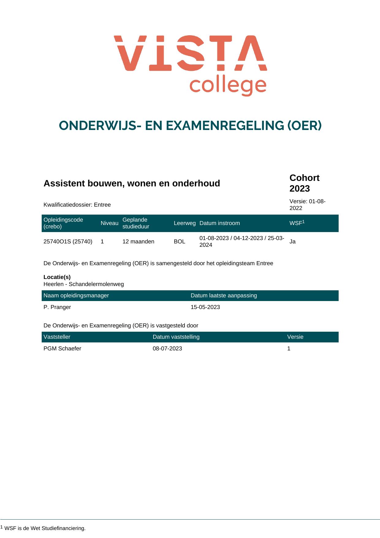 Assistent bouwen, wonen en onderhoud 25740O1S in cohort 2023-2024