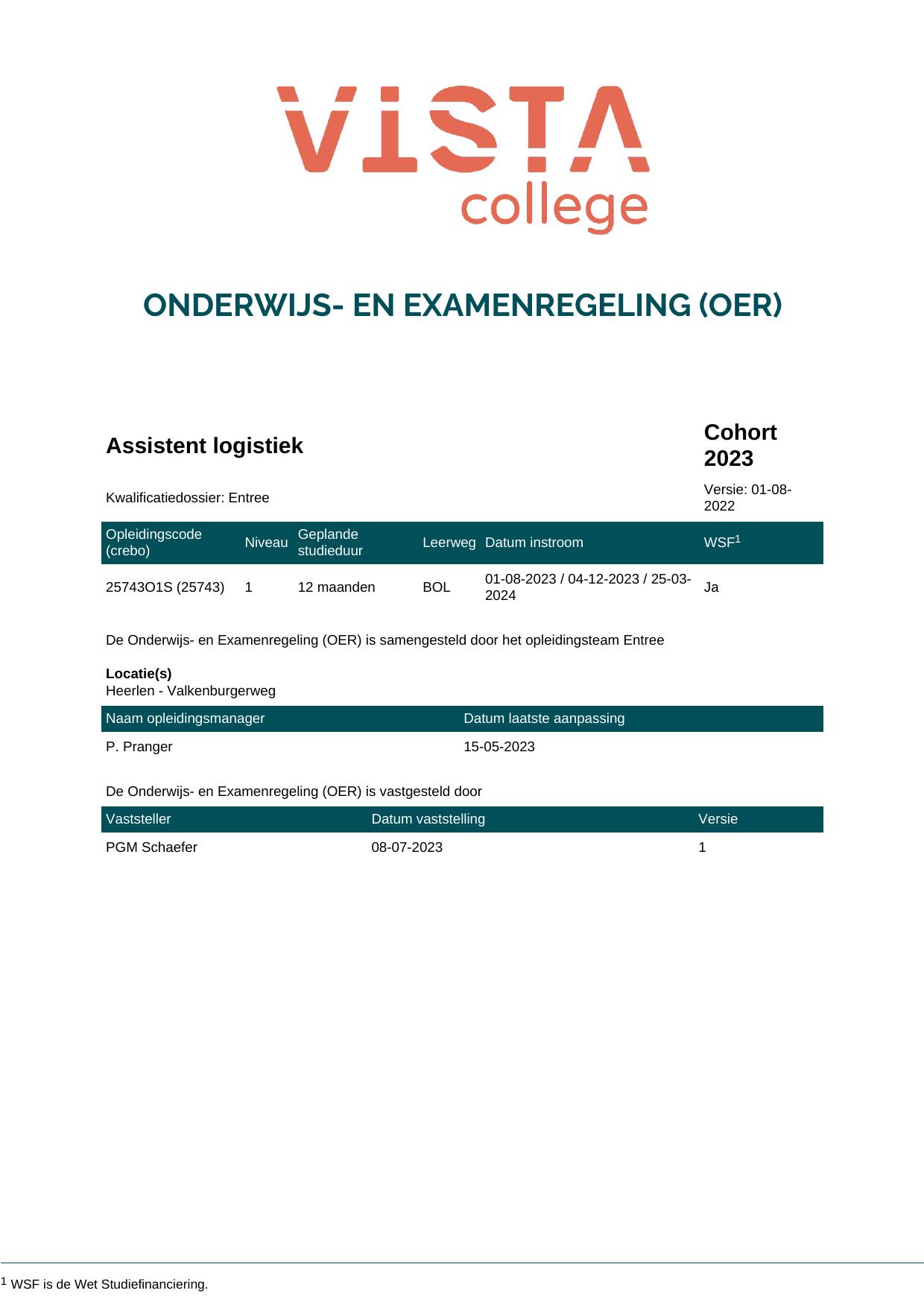 Assistent logistiek 25743O1S in cohort 2023-2024