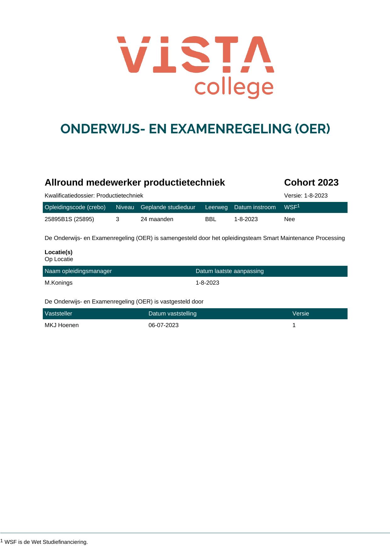 Allround medewerker productietechniek 25895B1S in cohort 2023-2024