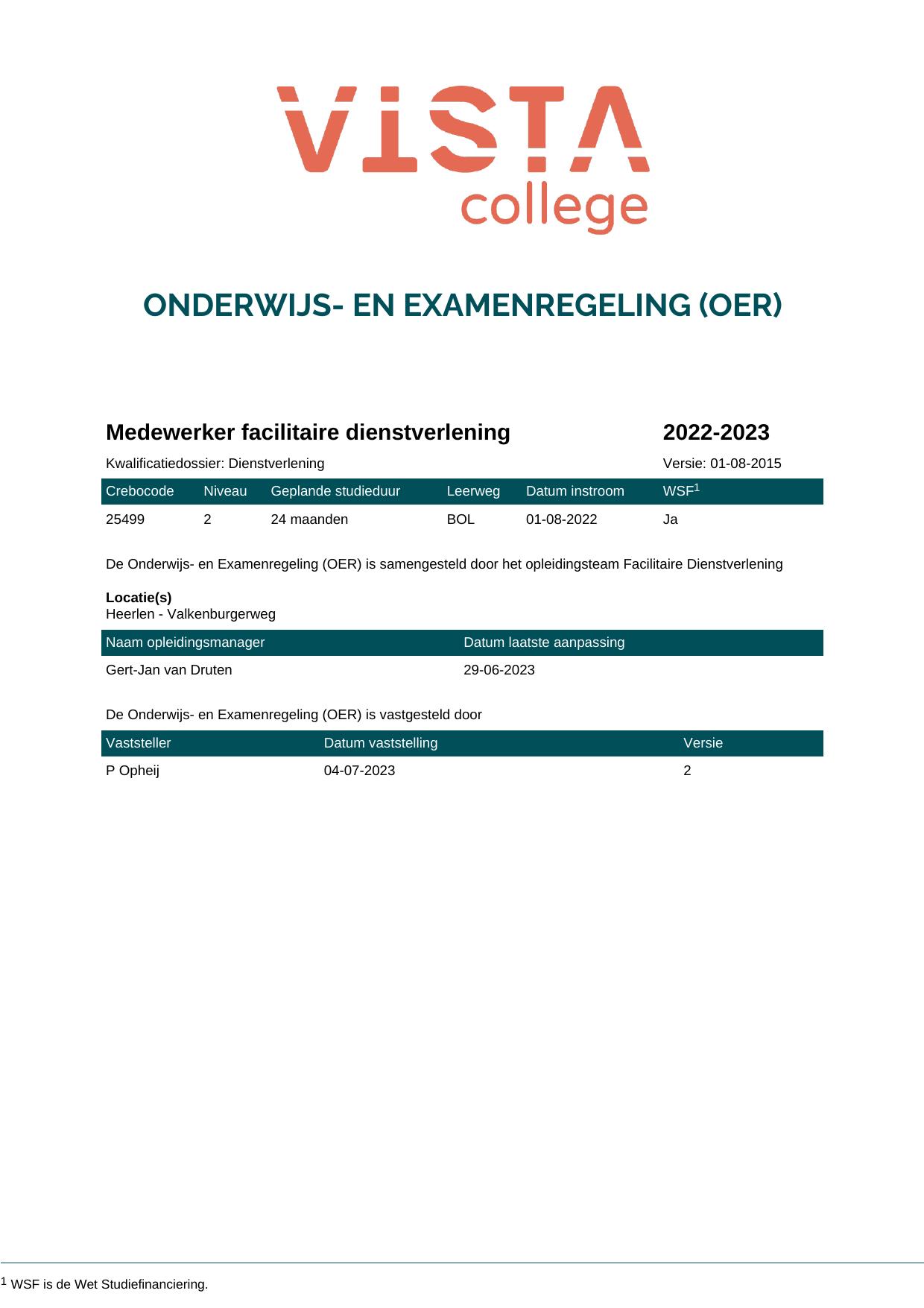 Medewerker facilitaire dienstverlening 25499O1S in cohort 2022-2023