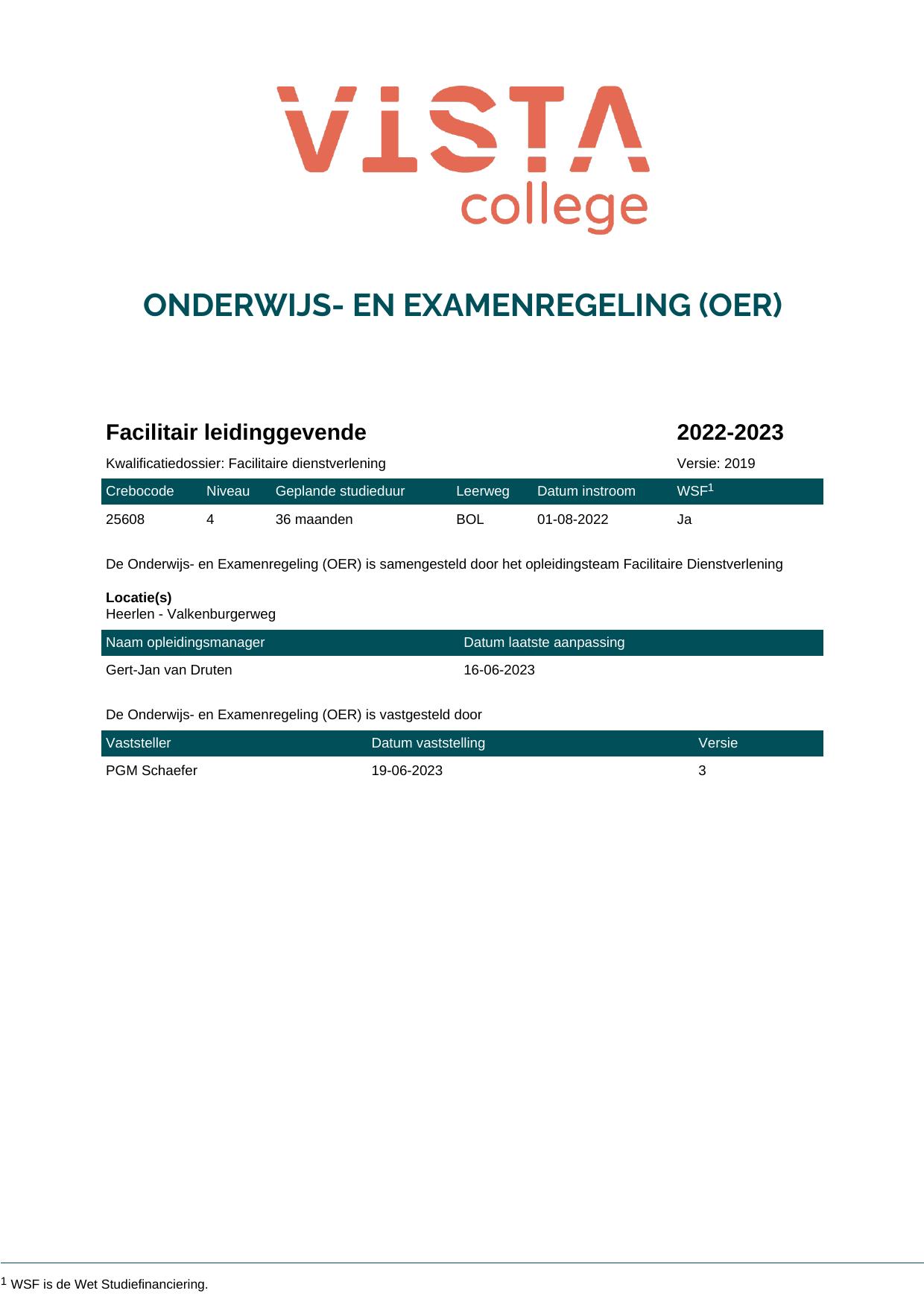 Facilitair leidinggevende 25608O1S in cohort 2022-2023