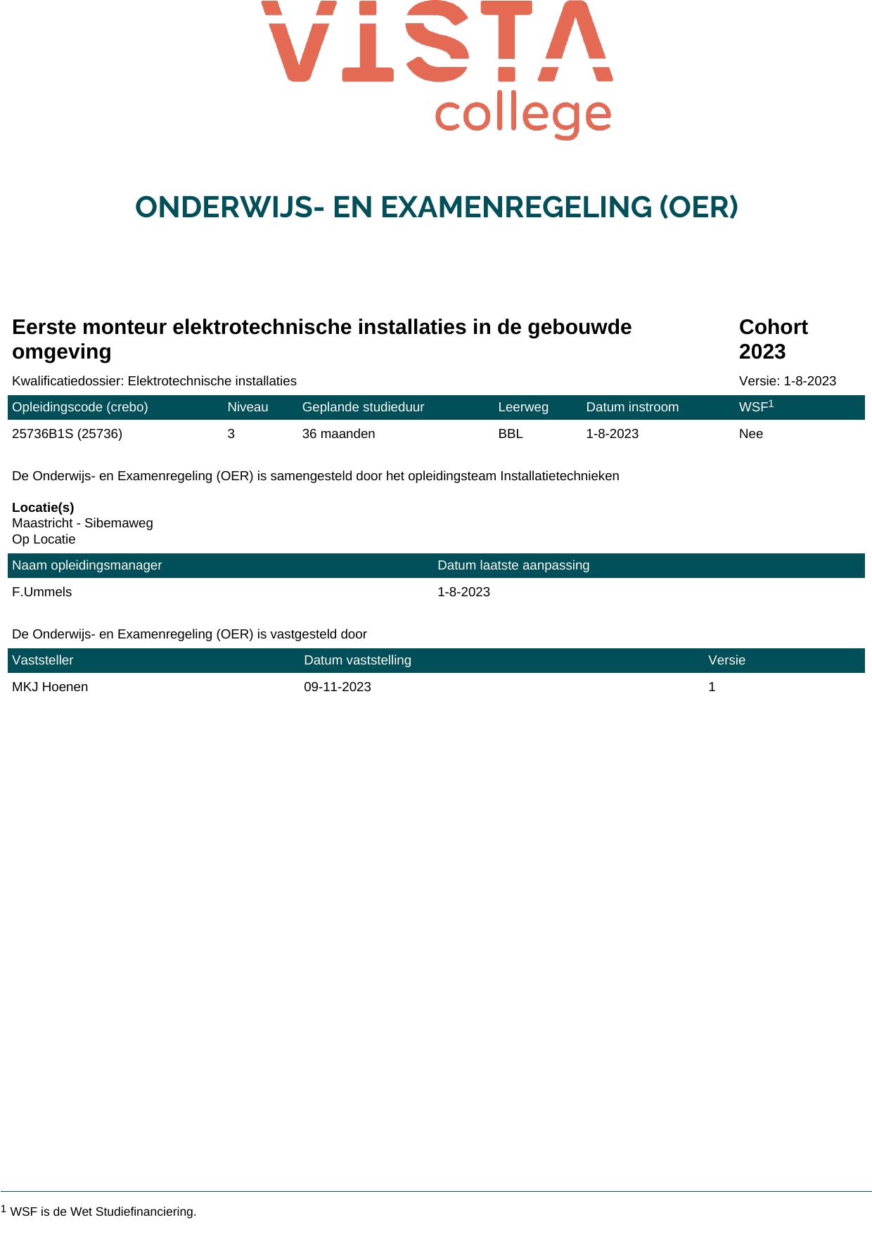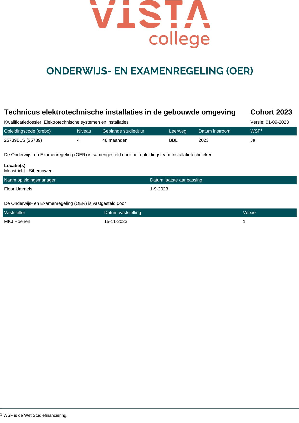 Technicus elektrotechnische installaties in de gebouwde omgeving 25739B1S in cohort 2023-2024