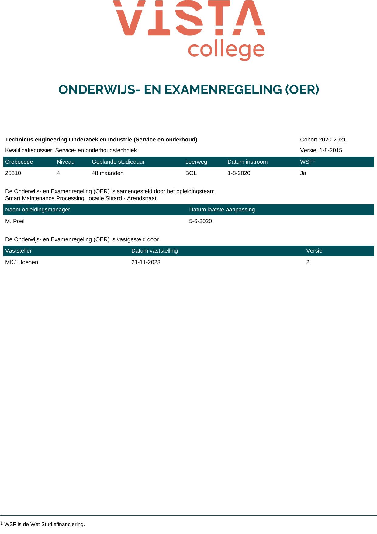 Technicus engineering Onderzoek en Industrie (Service en onderhoud) 25310O1S in cohort 2020-2021