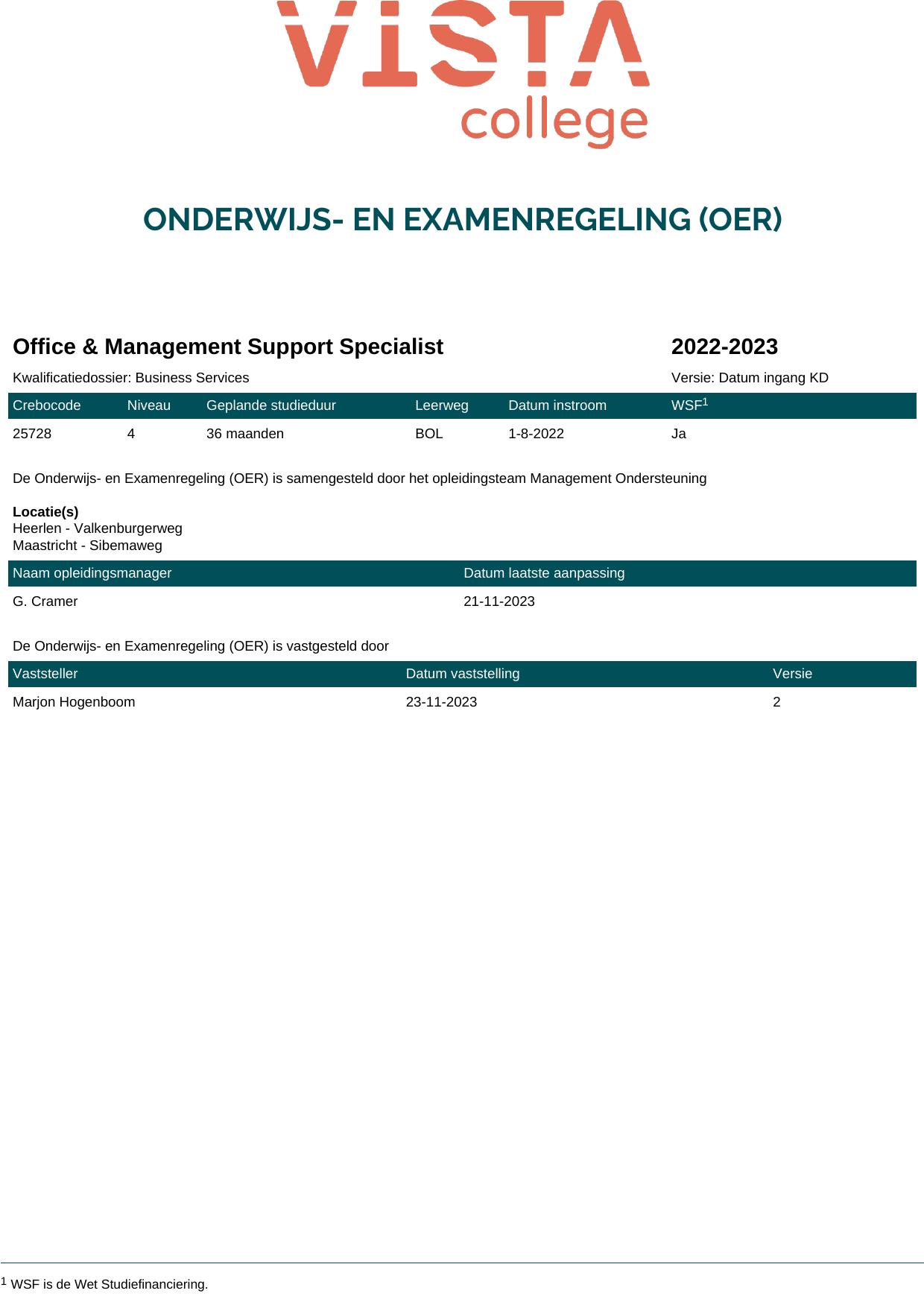 Office & Management Support Specialist 25728BOL in cohort 2022-2023