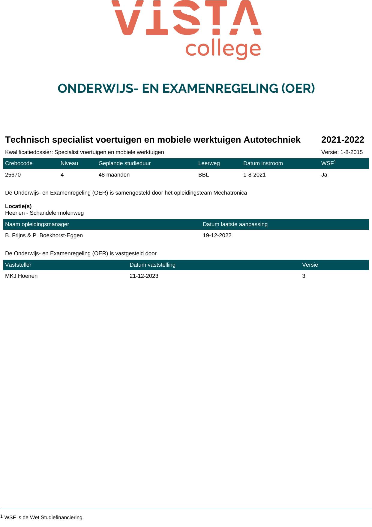 Technisch specialist voertuigen en mobiele werktuigen Autotechniek 25670O1S in cohort 2021-2022