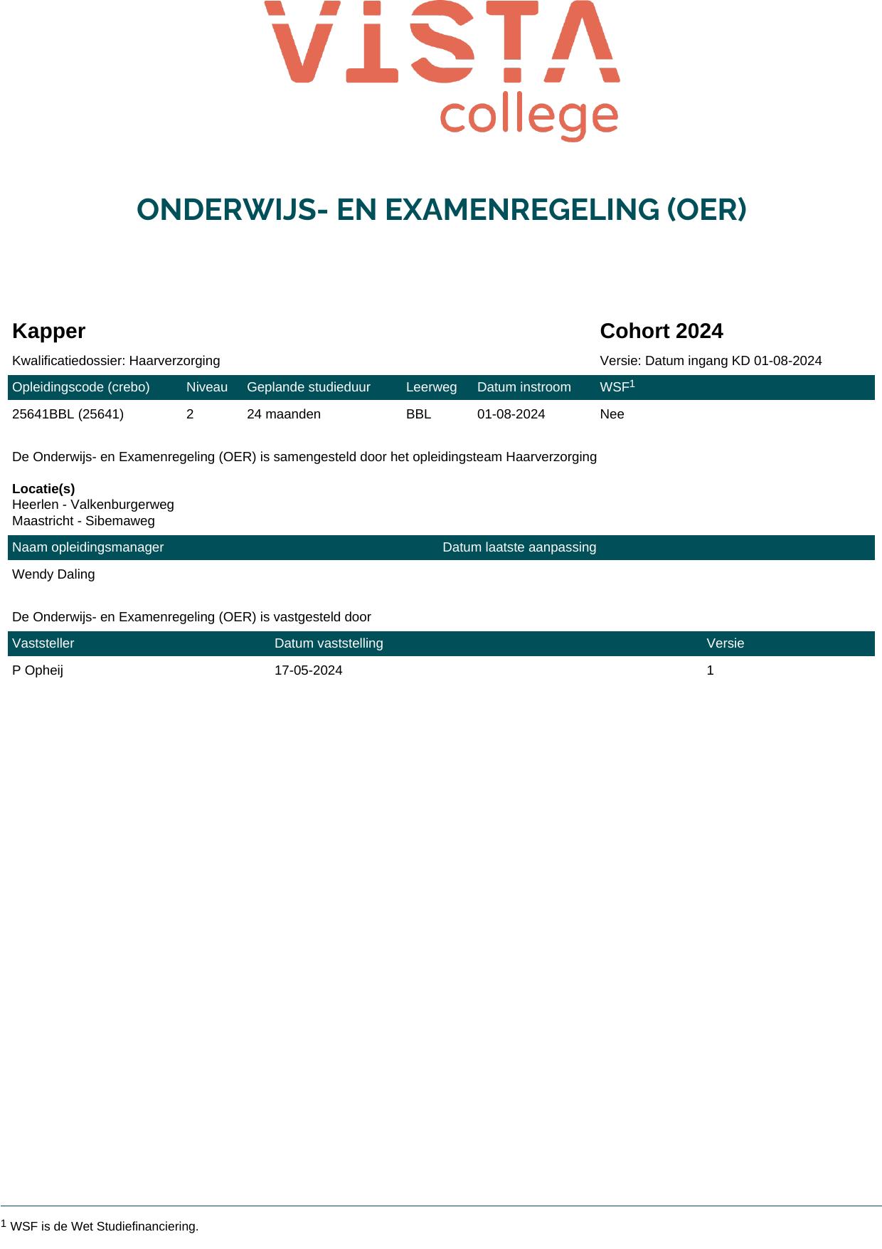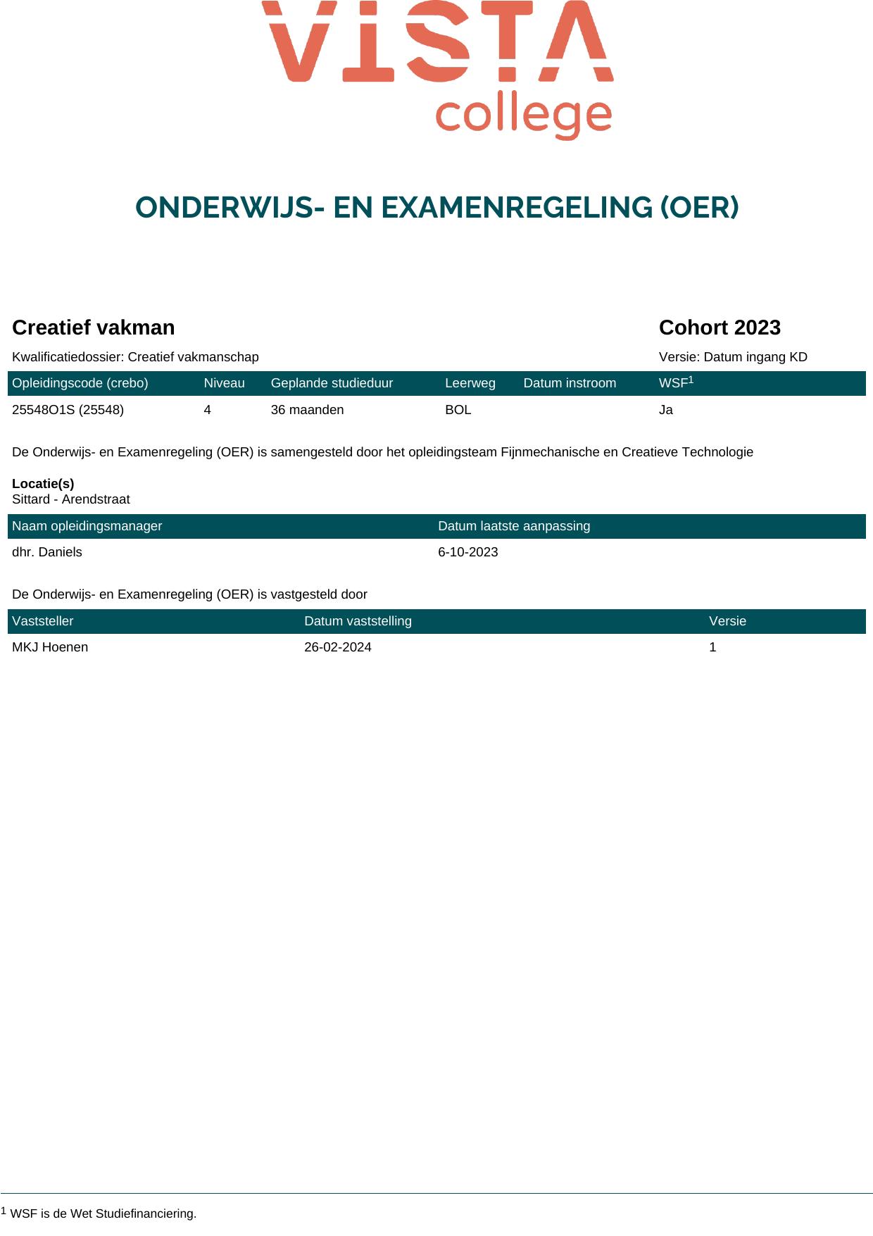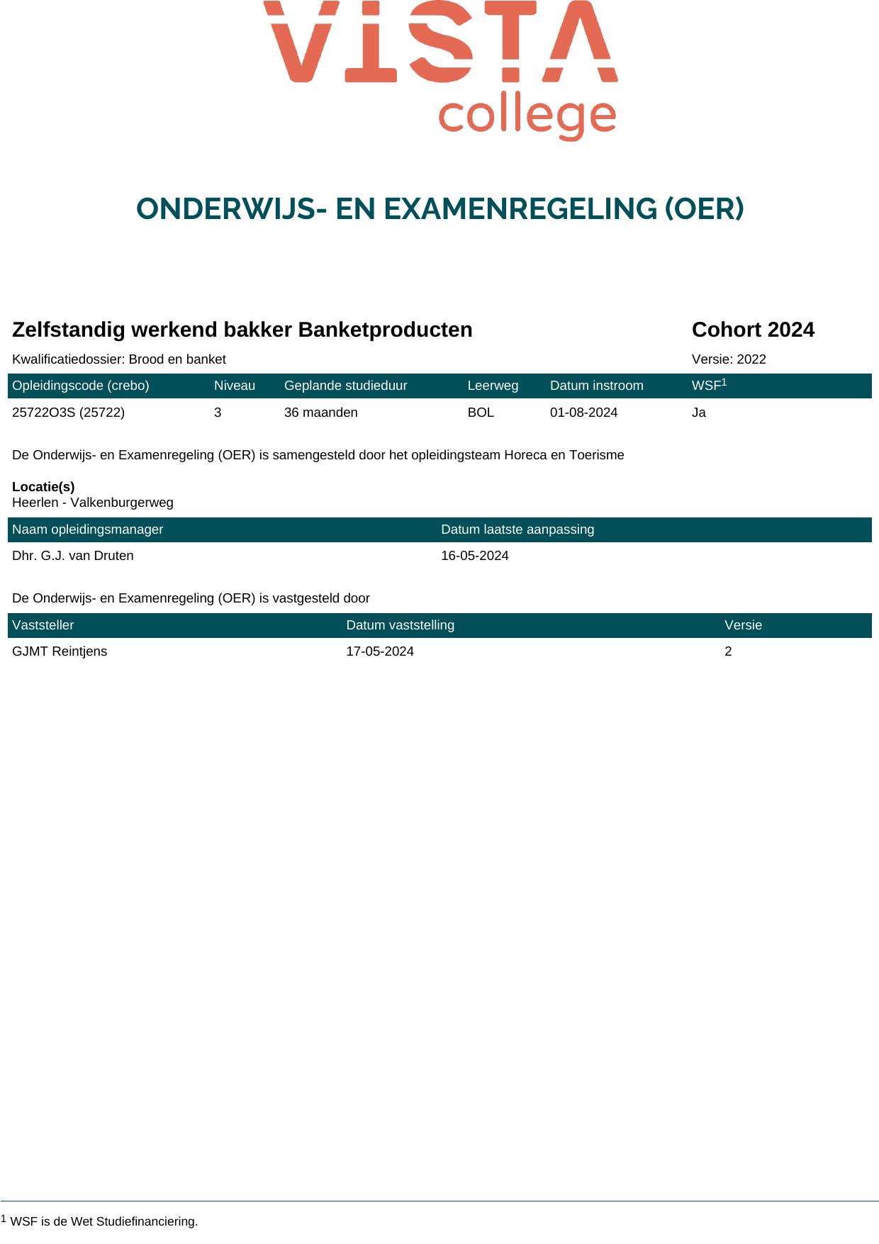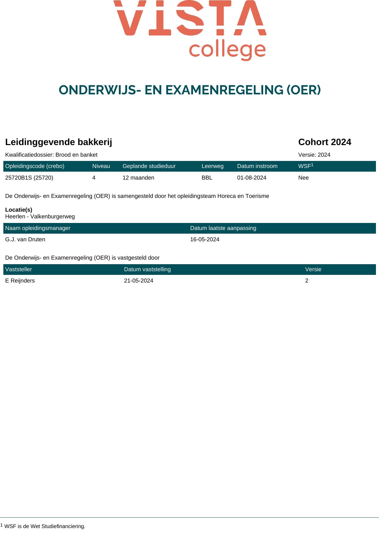 Leidinggevende bakkerij 25720B1S in cohort 2024-2025