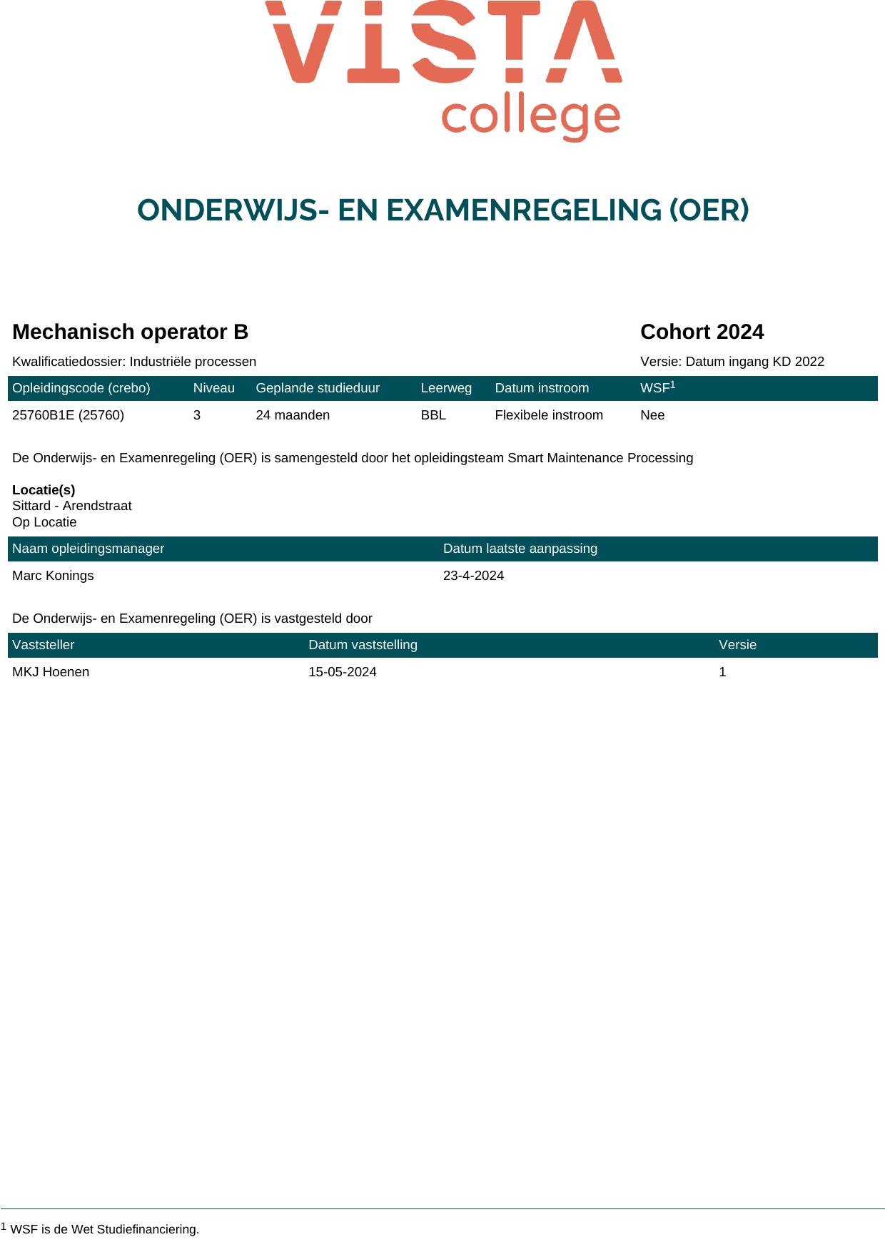 Mechanisch operator B 25760B1E in cohort 2024-2025