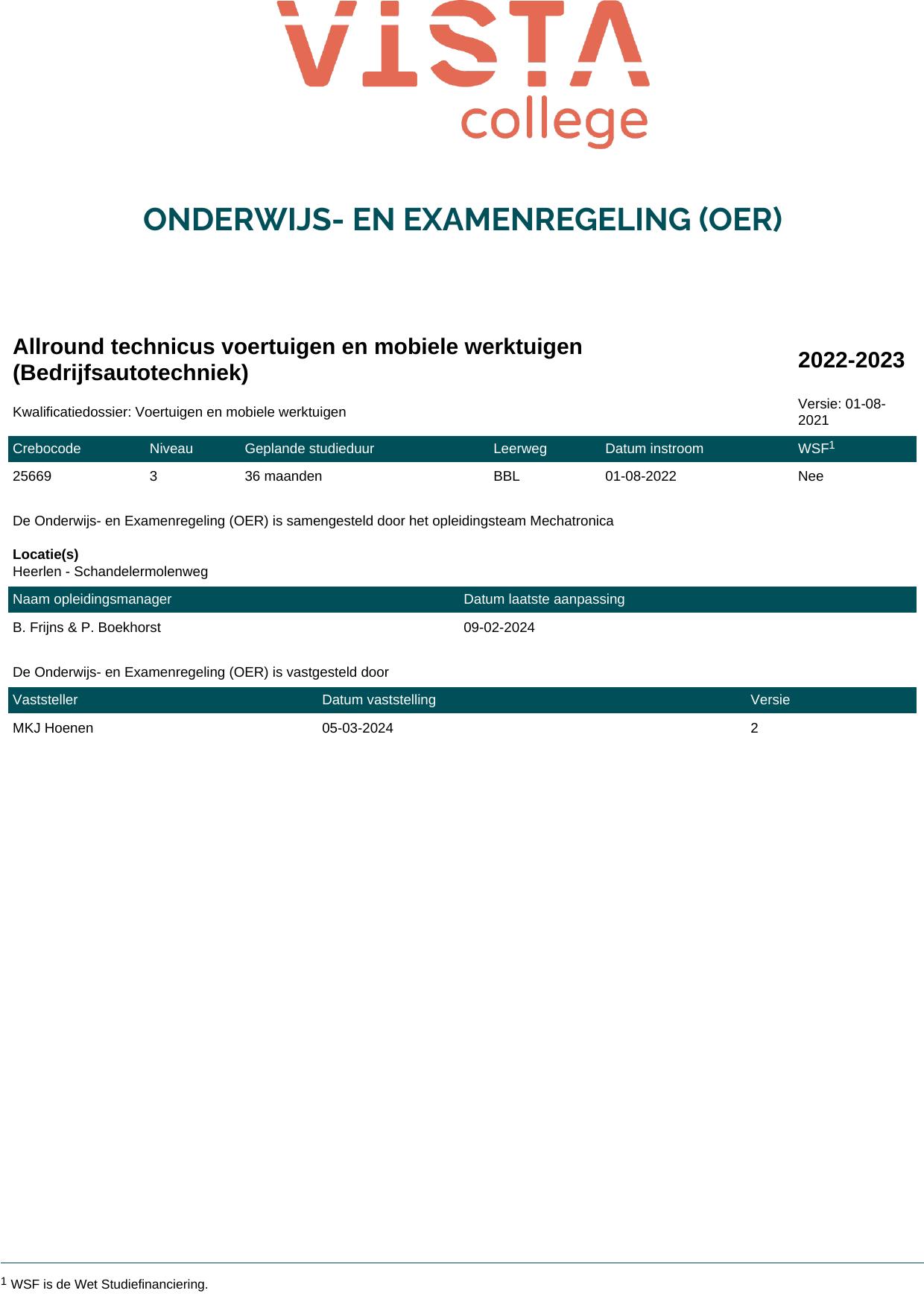 Allround technicus voertuigen en mobiele werktuigen (Bedrijfsautotechniek) 25669B2S in cohort 2022-2023