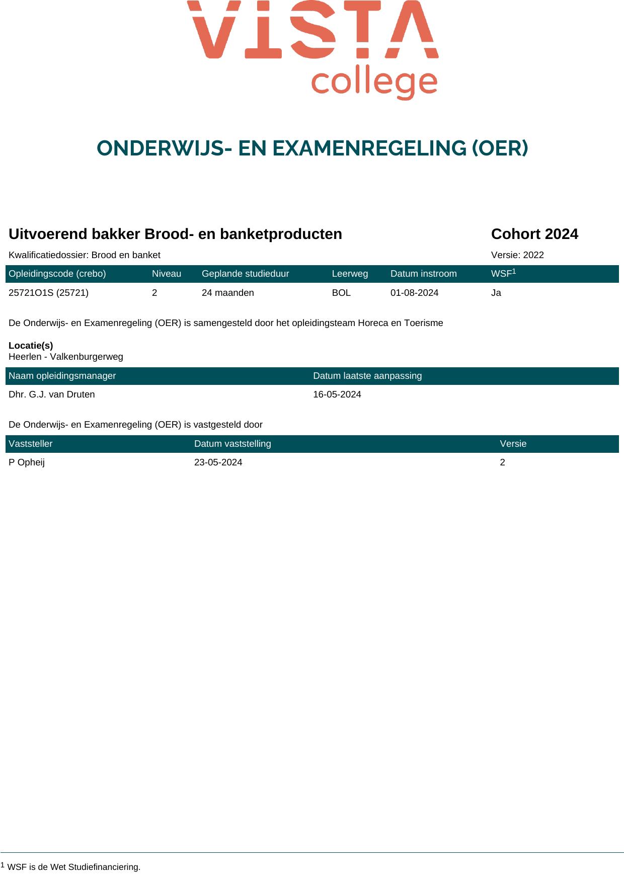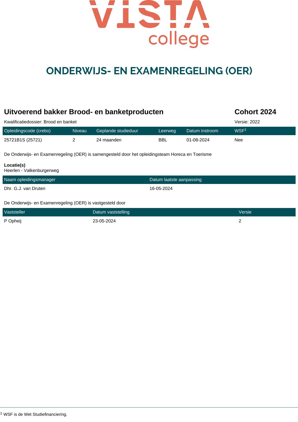 Uitvoerend bakker Banketproducten 25721B3S in cohort 2024-2025