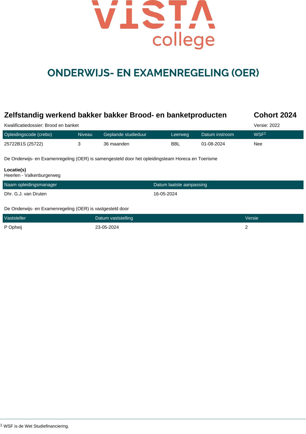 Zelfstandig werkend bakker bakker Brood- en banketproducten 25722O1S in cohort 2024-2025