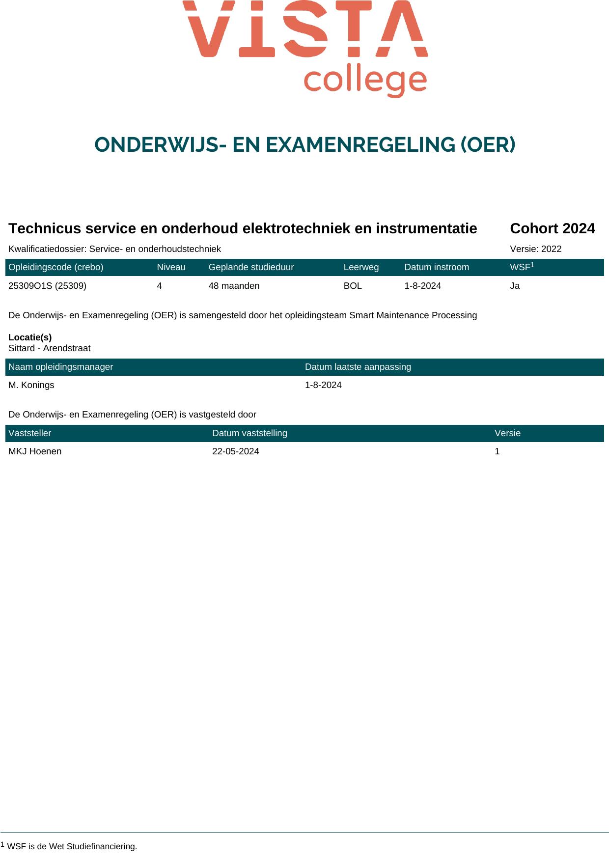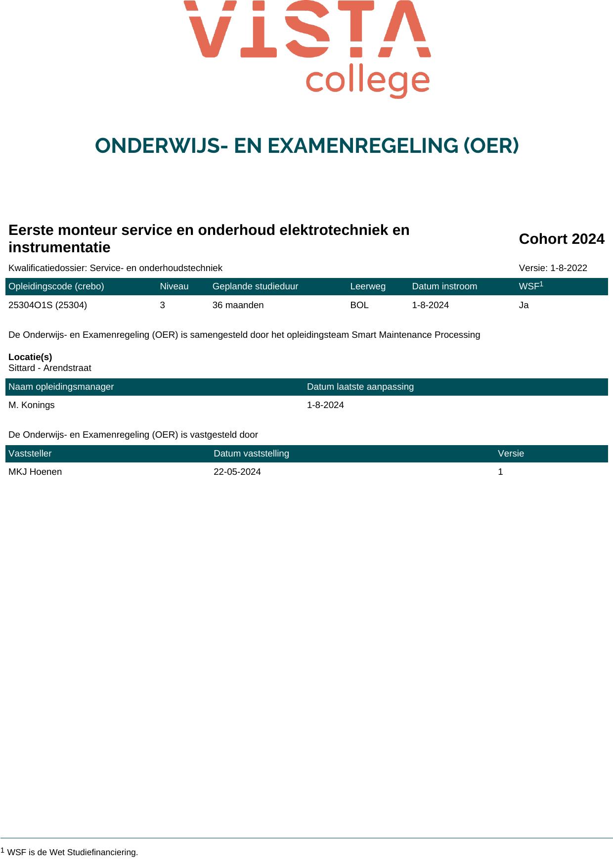 Eerste monteur service en onderhoud elektrotechniek en instrumentatie 25304O1S in cohort 2024-2025