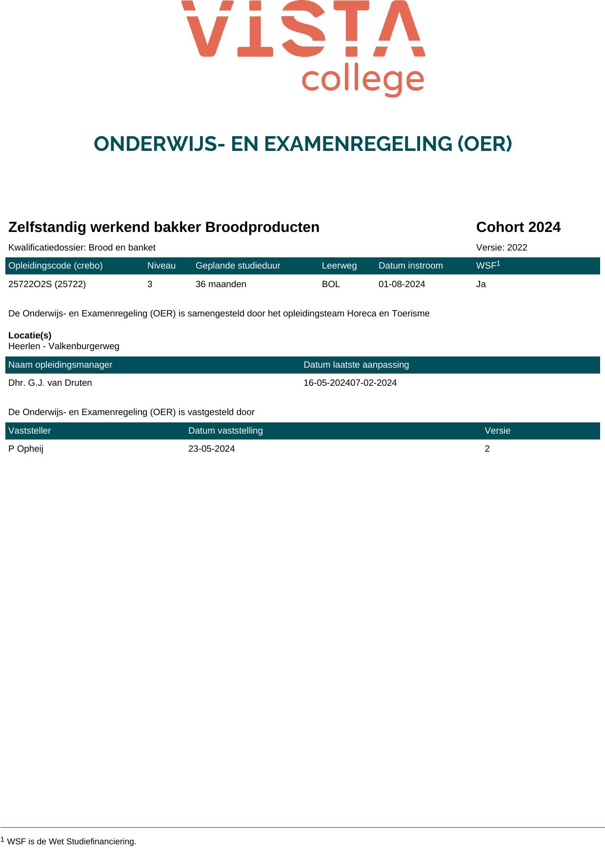 Zelfstandig werkend bakker Broodproducten 25722O2S in cohort 2024-2025