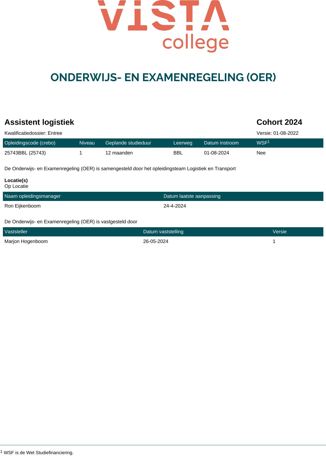 Logistiek 23309BOL in cohort 2024-2025