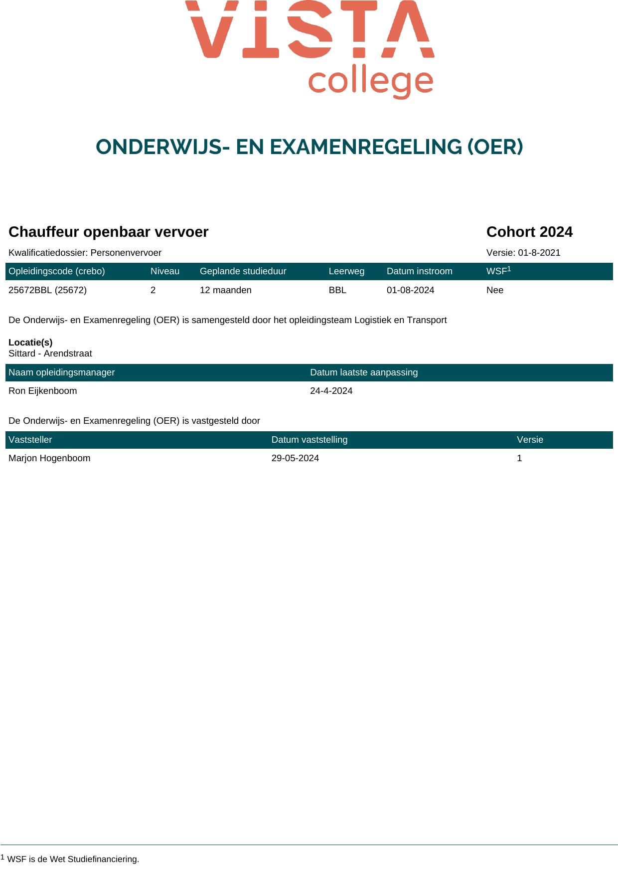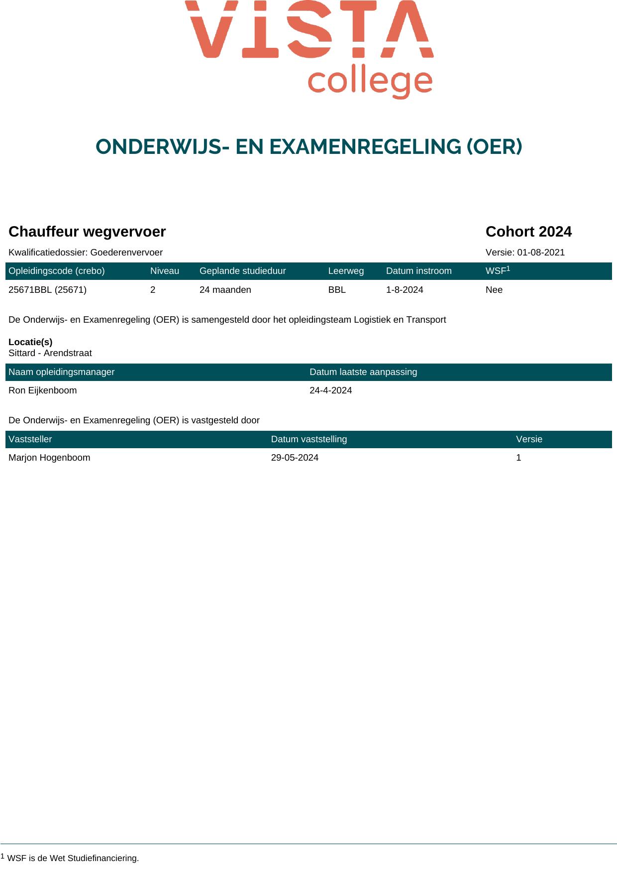 Chauffeur wegvervoer 25671BBL in cohort 2024-2025