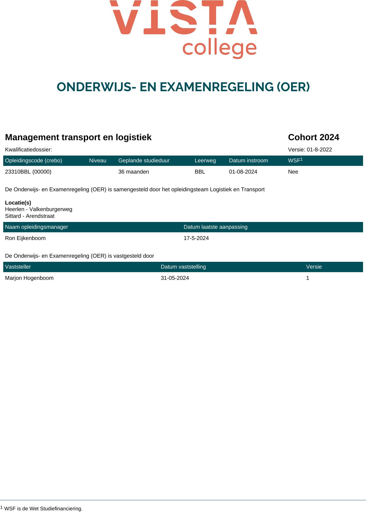 Management transport en logistiek 23310BBL in cohort 2024-2025