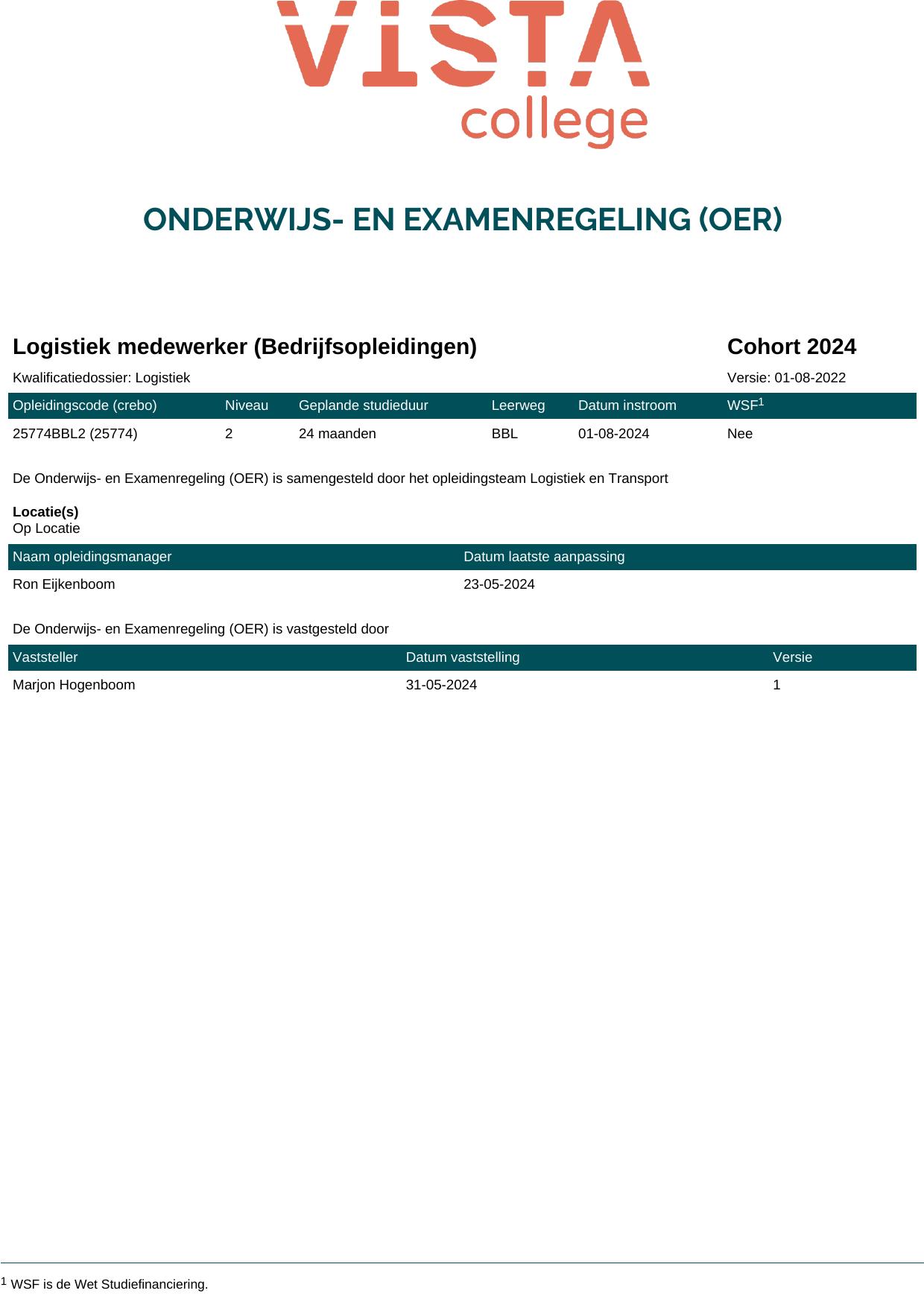Logistiek medewerker (Bedrijfsopleidingen) 25774BBL2 in cohort 2024-2025