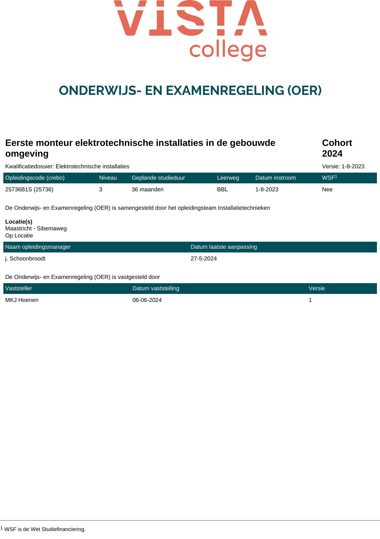 Eerste monteur elektrotechnische installaties in de gebouwde omgeving 25736O1S in cohort 2024-2025