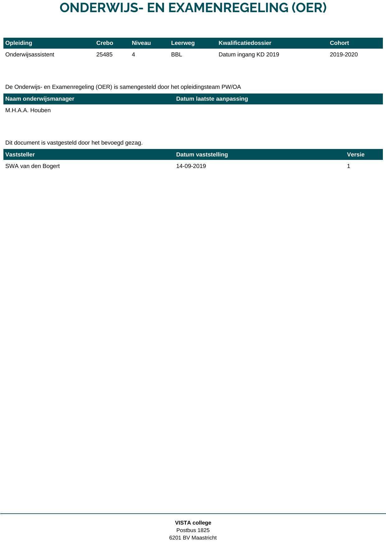 Onderwijsassistent 25485B1S in cohort 2019-2020
