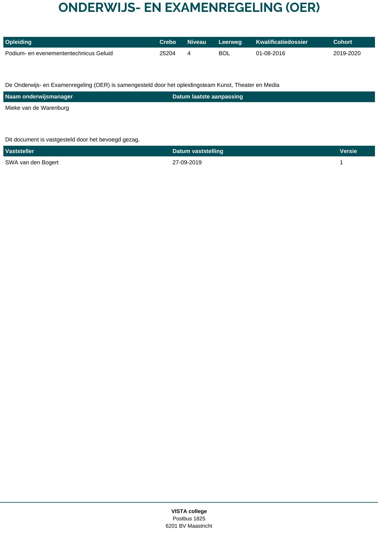 Podium- en evenemententechnicus Geluid 25204O1S in cohort 2019-2020