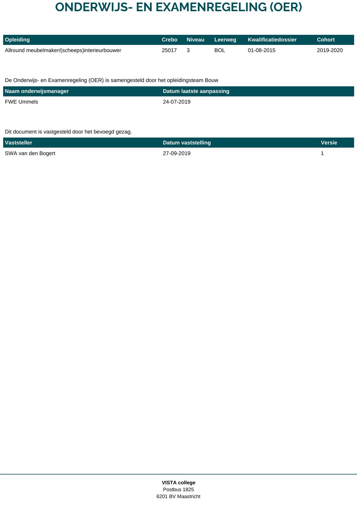 Allround meubelmaker/(scheeps)interieurbouwer 25017O1S in cohort 2019-2020