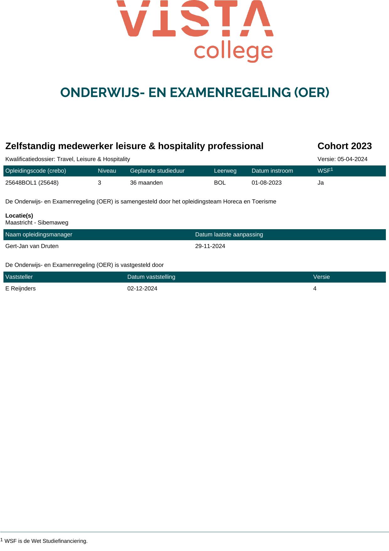 Zelfstandig medewerker leisure & hospitality professional 25648BOL1 in cohort 2023-2024
