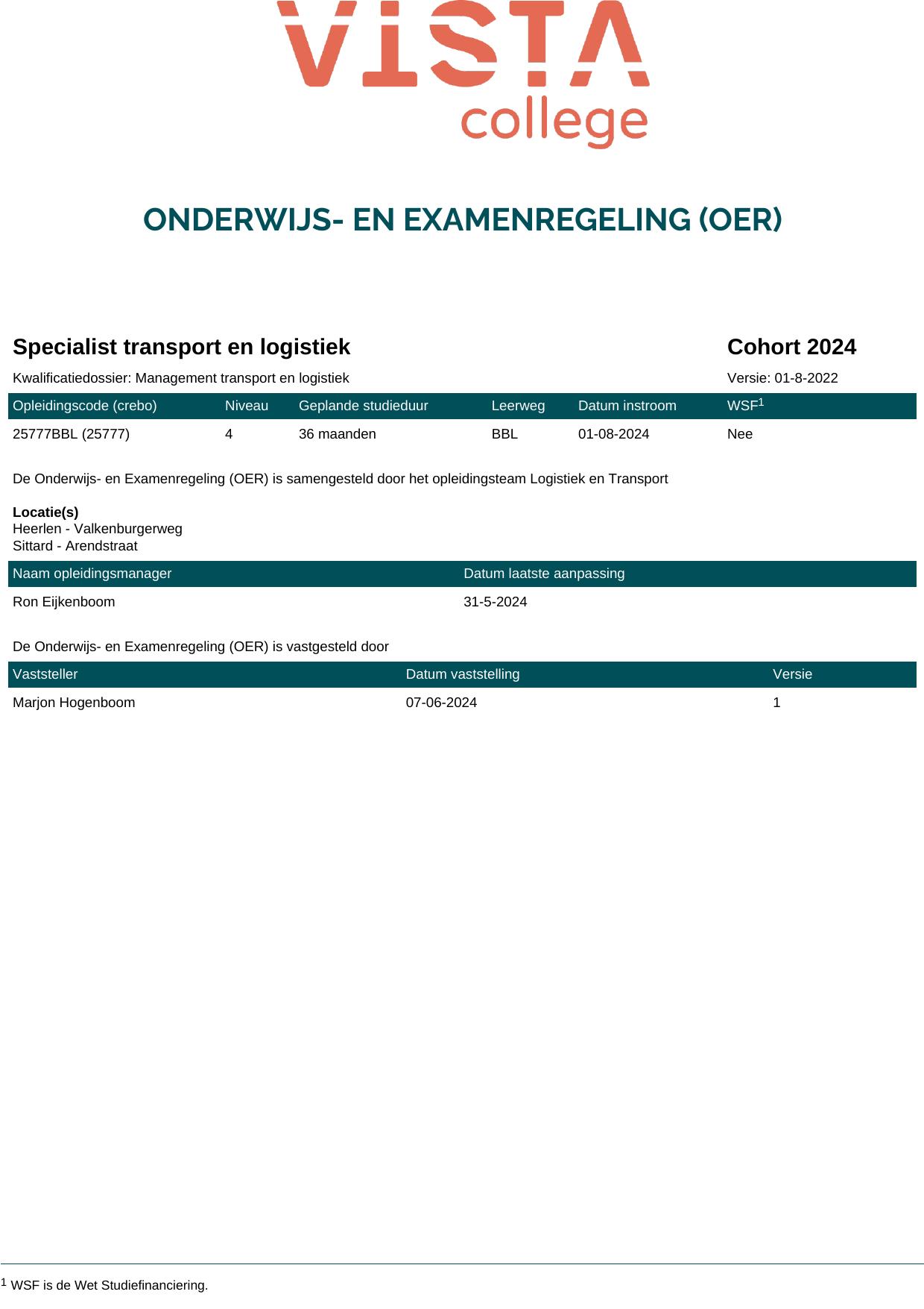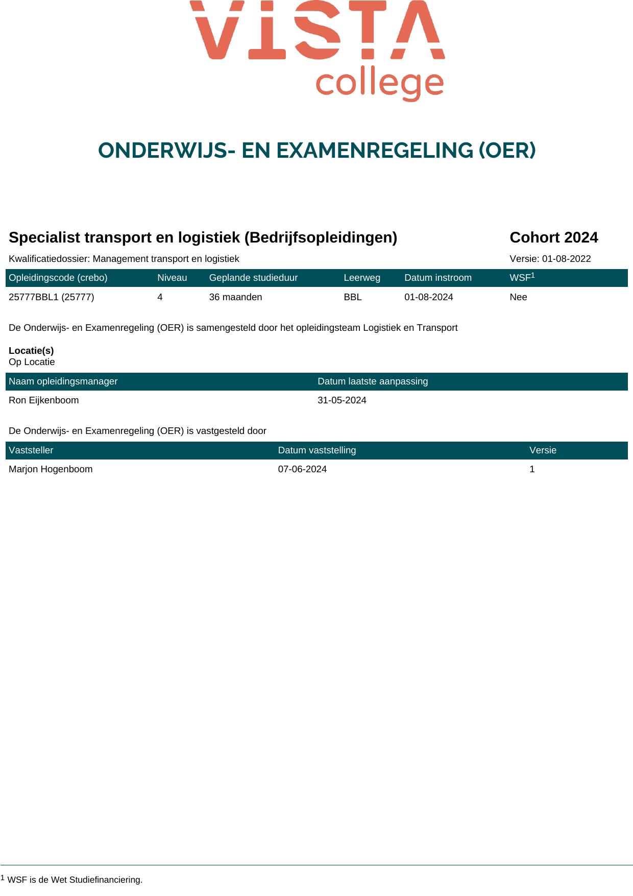 Specialist transport en logistiek 25777BBL in cohort 2024-2025