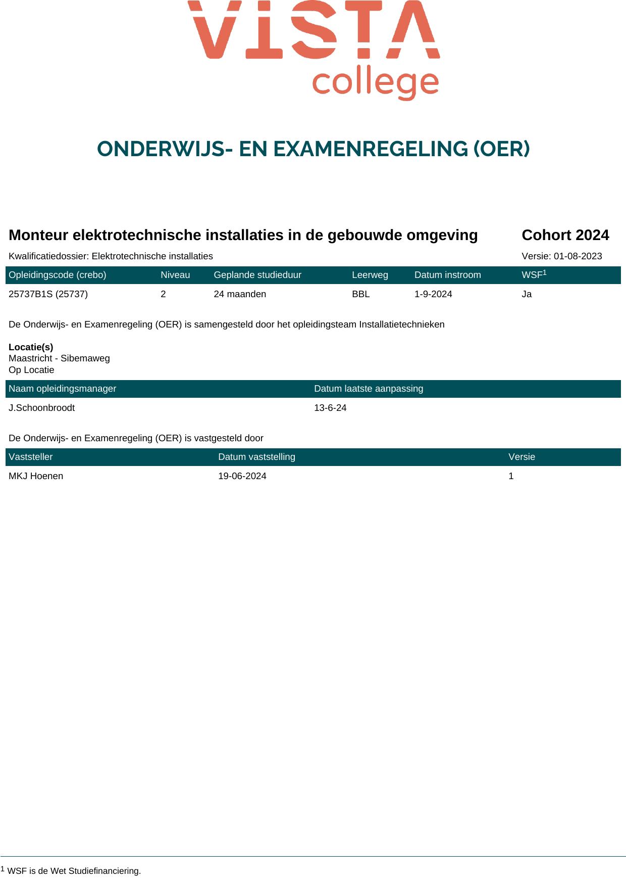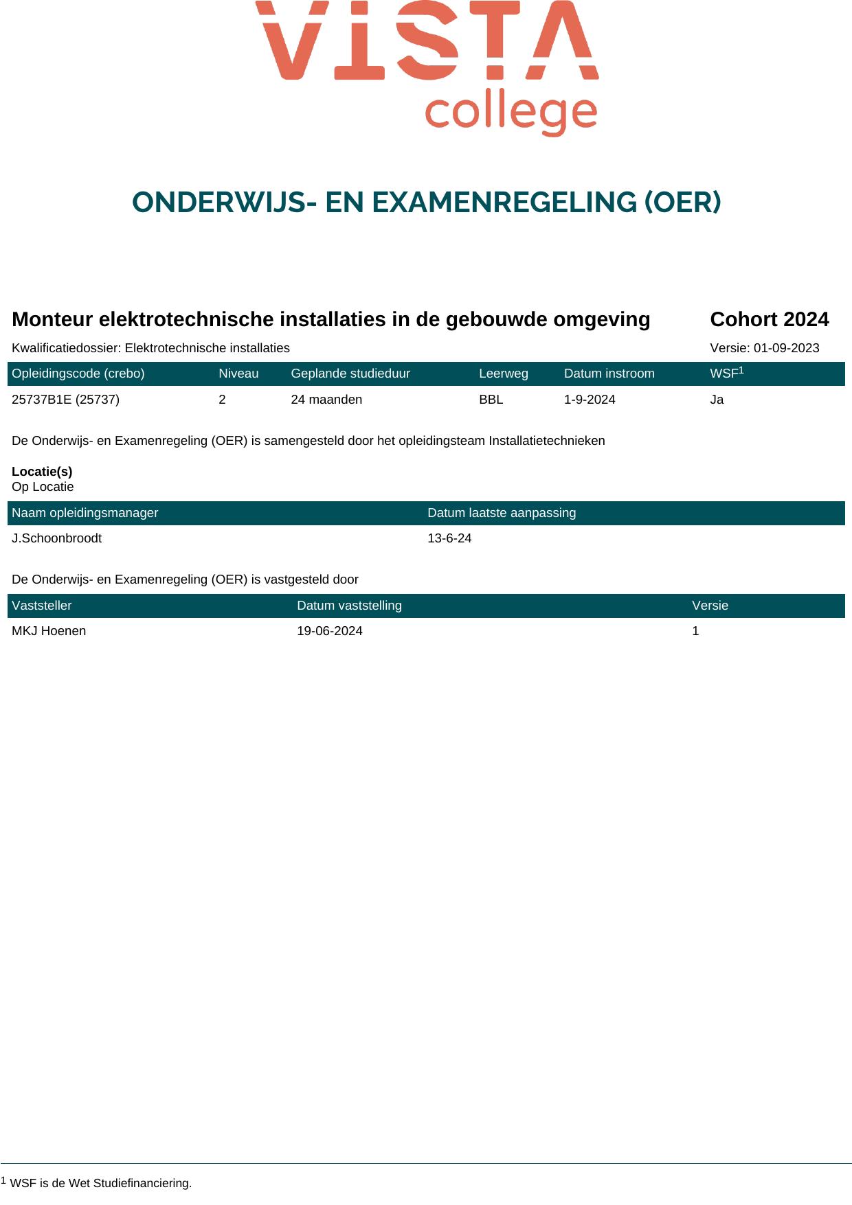 Monteur elektrotechnische installaties in de gebouwde omgeving 25737O1S in cohort 2024-2025