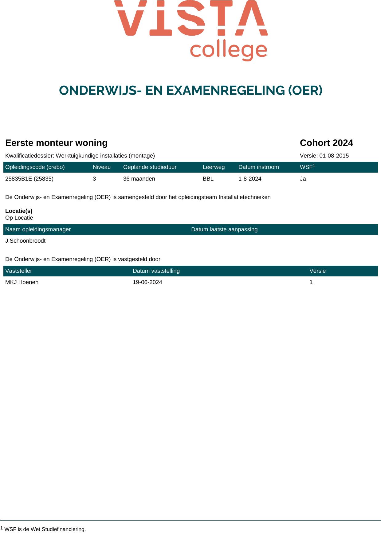 Eerste monteur woning 25835O1S in cohort 2024-2025
