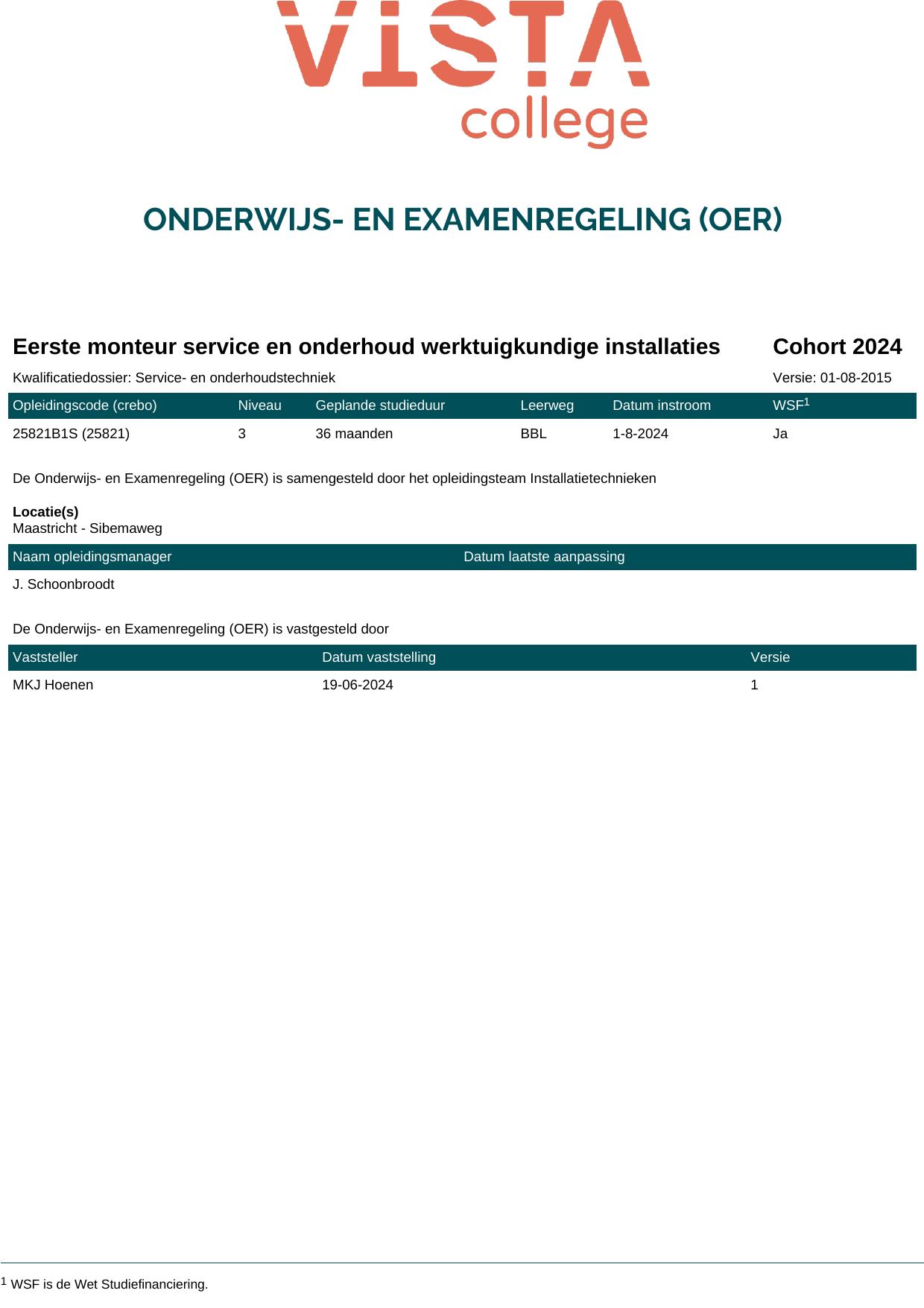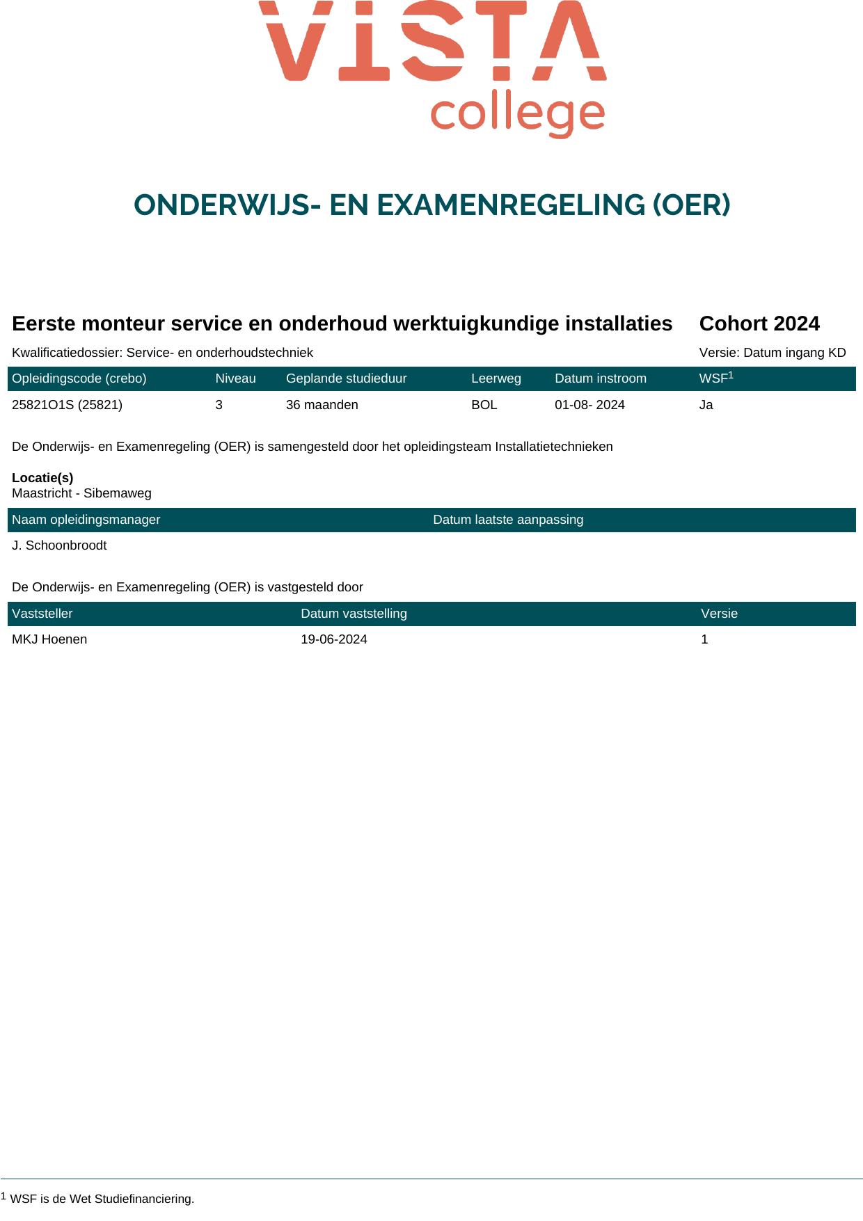 Eerste monteur service en onderhoud werktuigkundige installaties 25821O1S in cohort 2024-2025