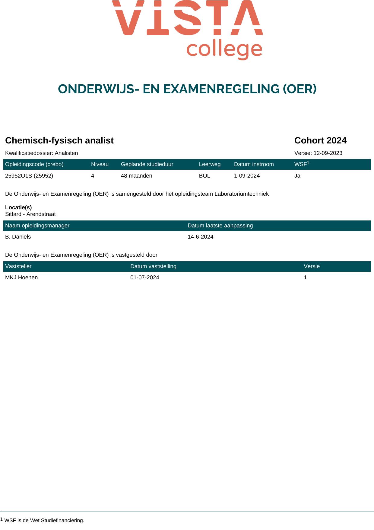 Chemisch-fysisch analist 25952O1S in cohort 2024-2025