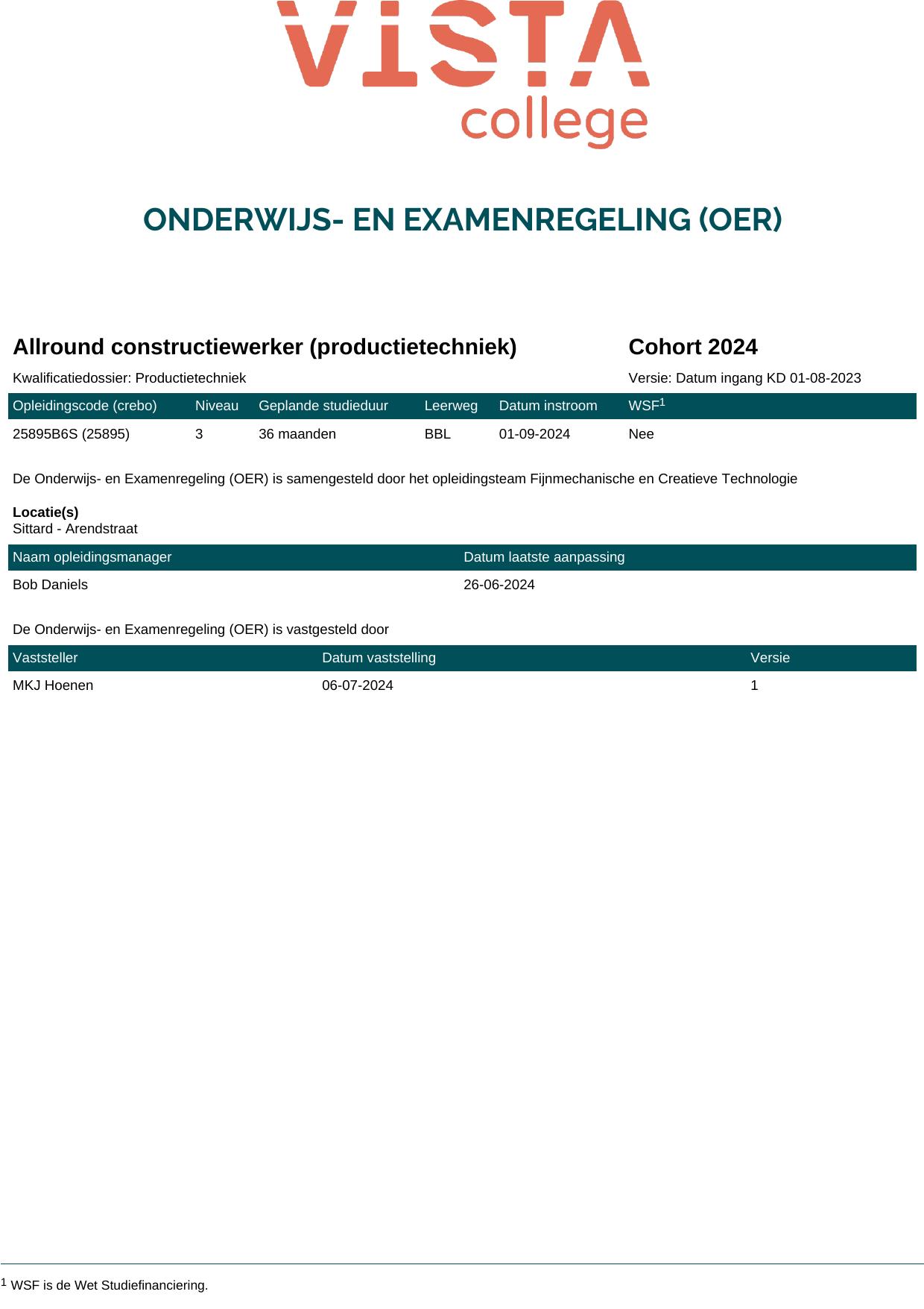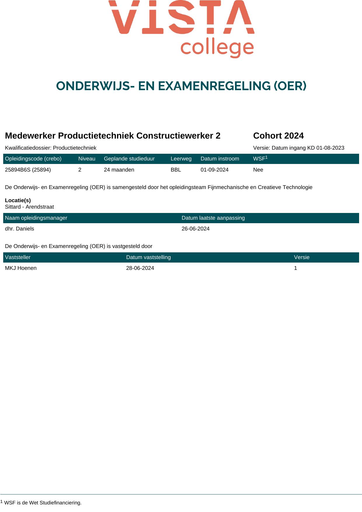 Medewerker Productietechniek Constructiewerker 2 25894B6S in cohort 2024-2025