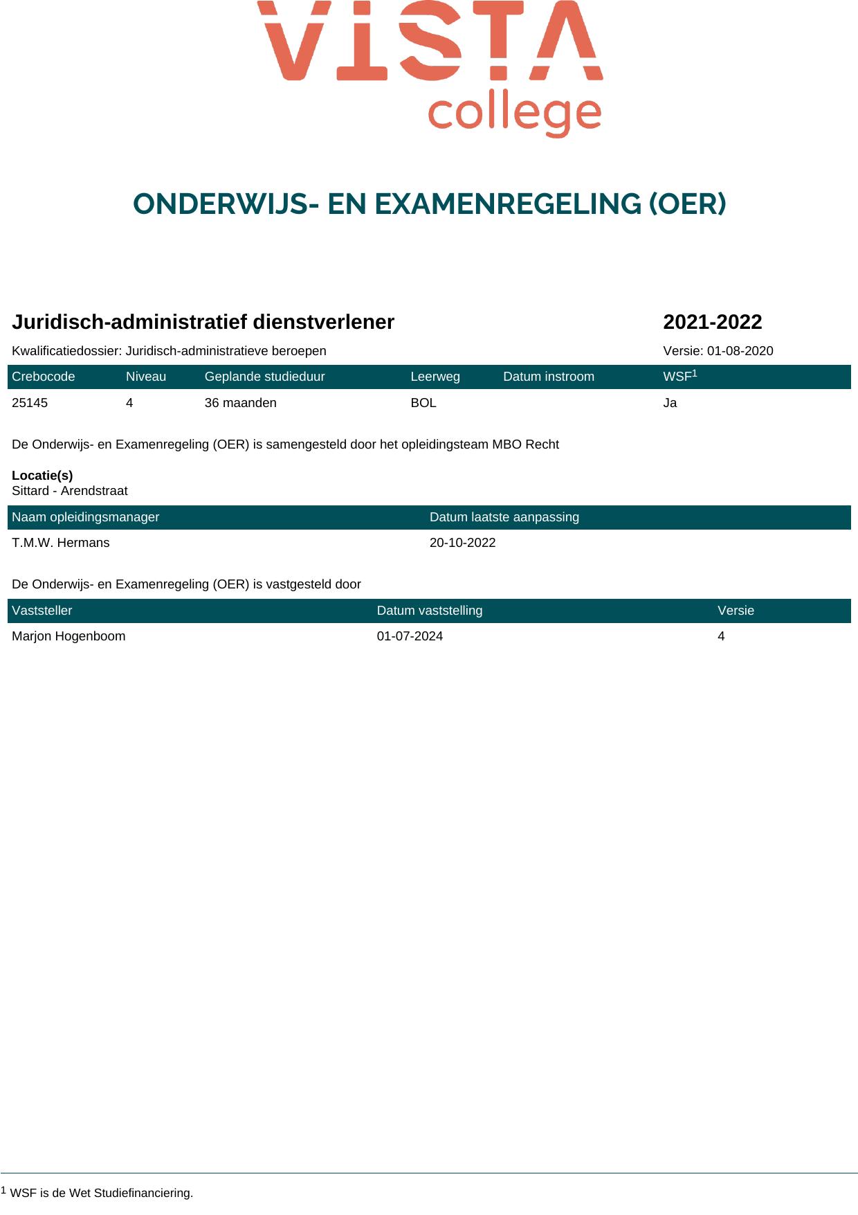 Juridisch-administratief dienstverlener 1J25145BV3V1 in cohort 2021-2022