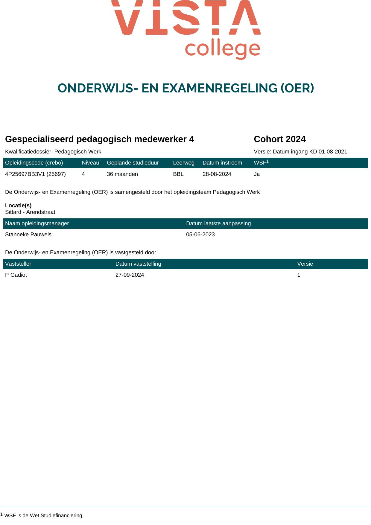 Gespecialiseerd pedagogisch medewerker 4 4P25697BB3V1 in cohort 2024-2025