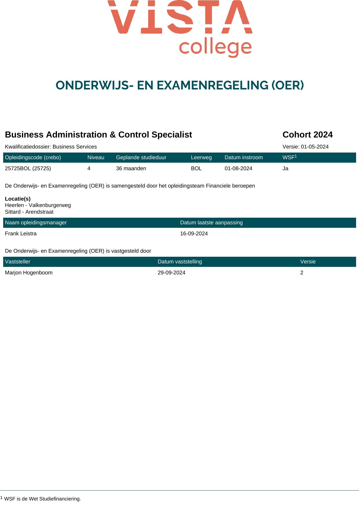 Business Administration & Control Specialist 25725BOL in cohort 2024-2025