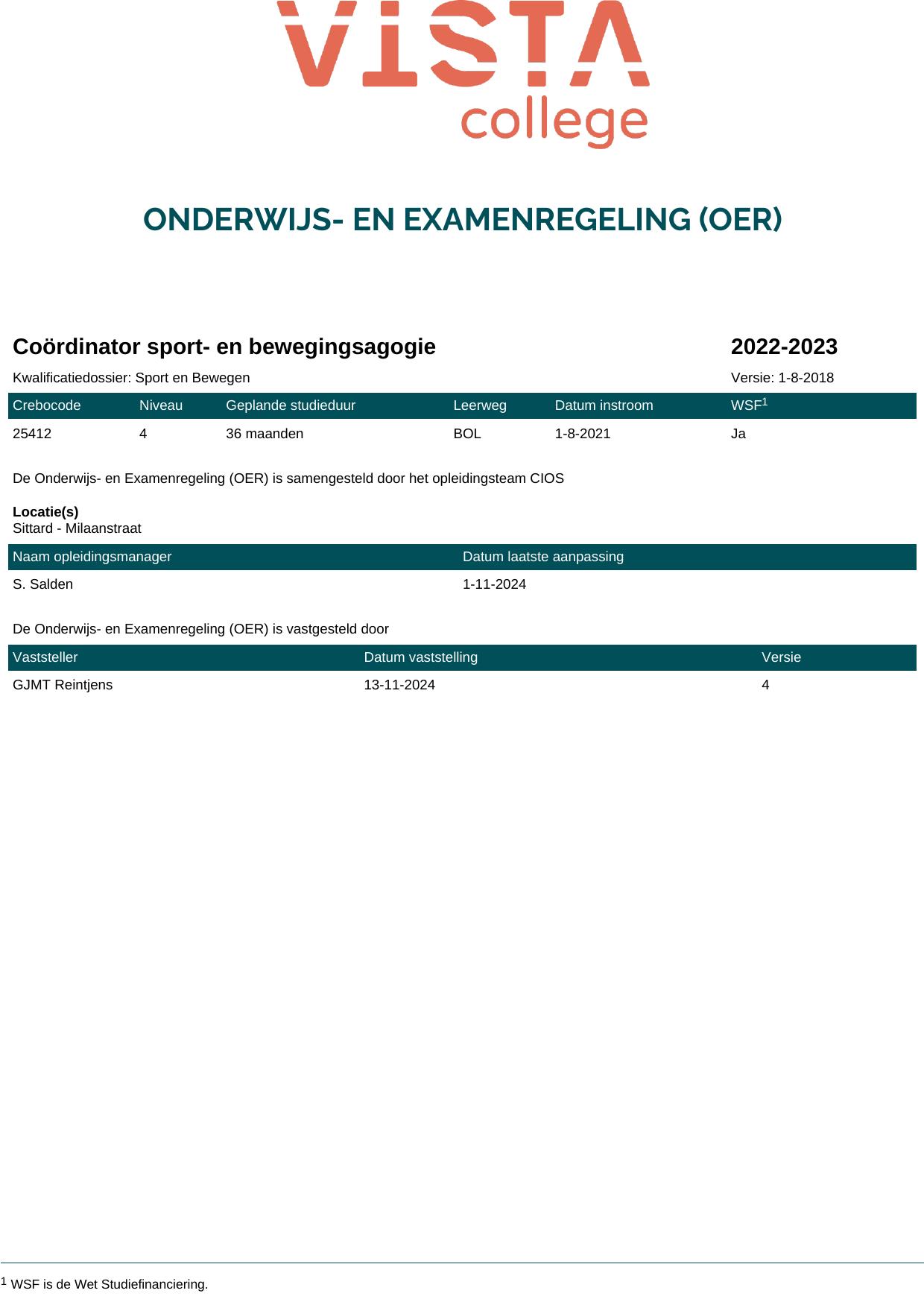 Coördinator sport, bewegen en gezondheid 2G25413BV3V1 in cohort 2021-2022