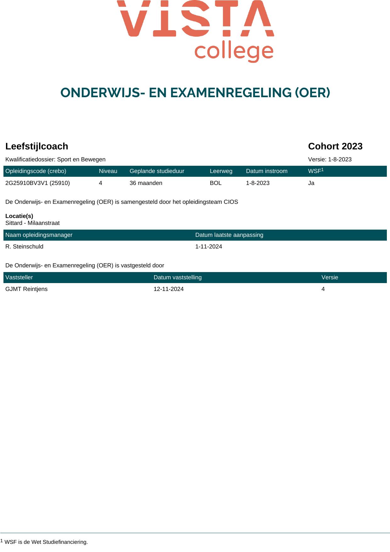 Leefstijlcoach 2G25910BV3V1 in cohort 2023-2024