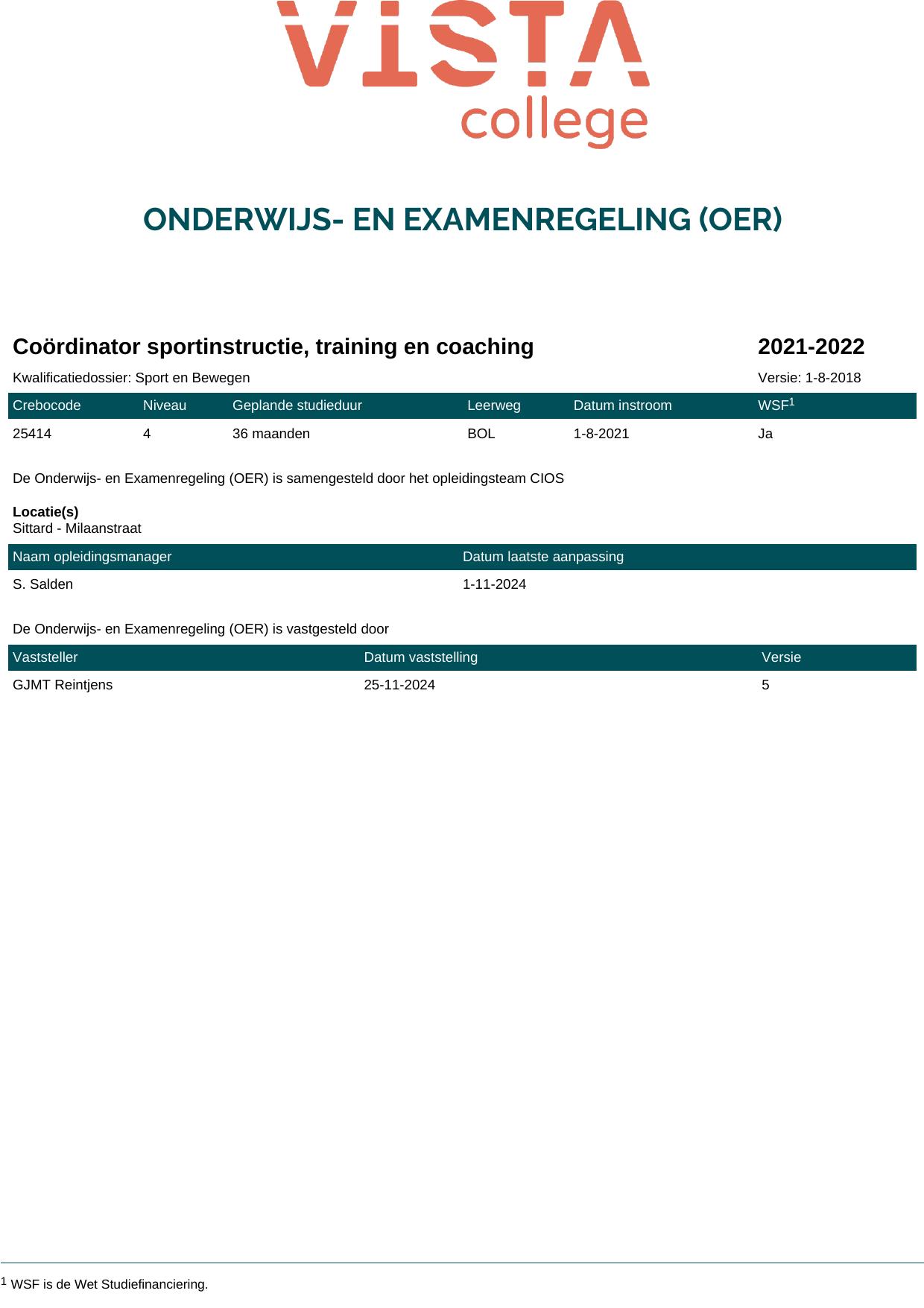Coördinator sportinstructie, training en coaching 2G25414BV3V1 in cohort 2021-2022