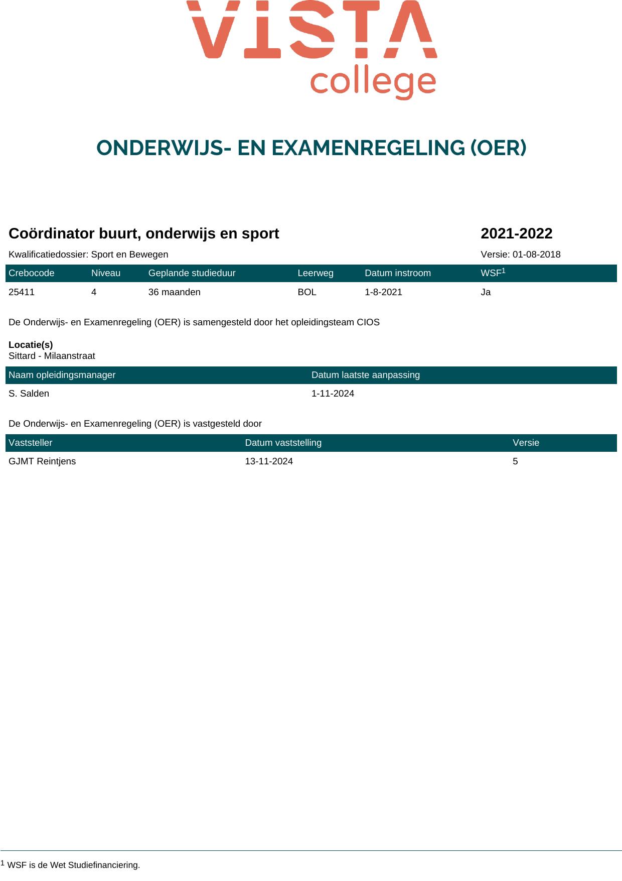 Coördinator buurt, onderwijs en sport 2G25411BV3V1 in cohort 2021-2022