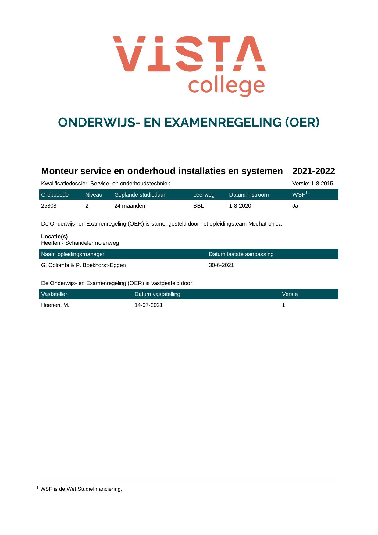 Monteur service en onderhoud installaties en systemen 25308B1S in cohort 2021-2022
