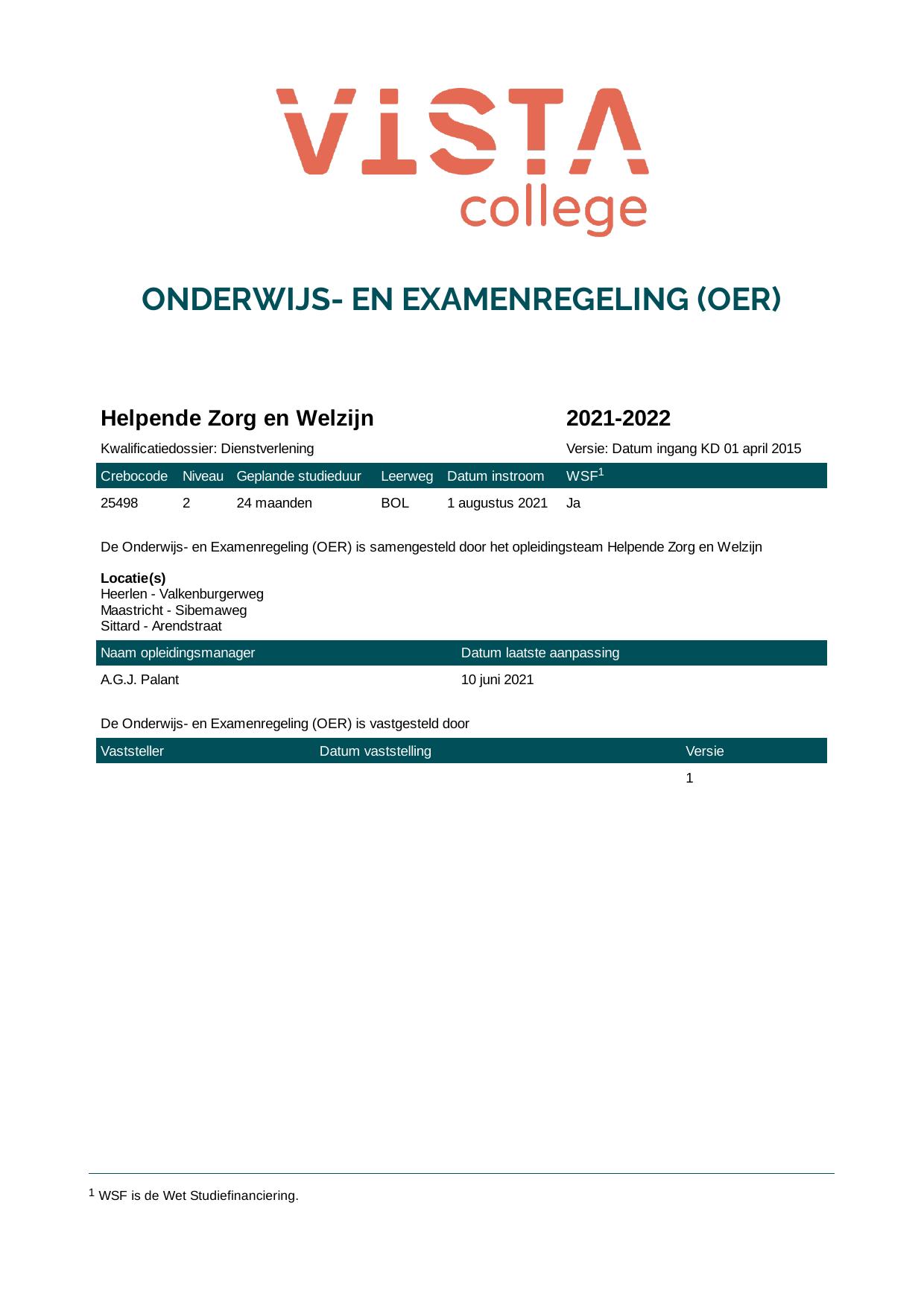 Helpende Zorg en Welzijn 25498BOL in cohort 2021-2022