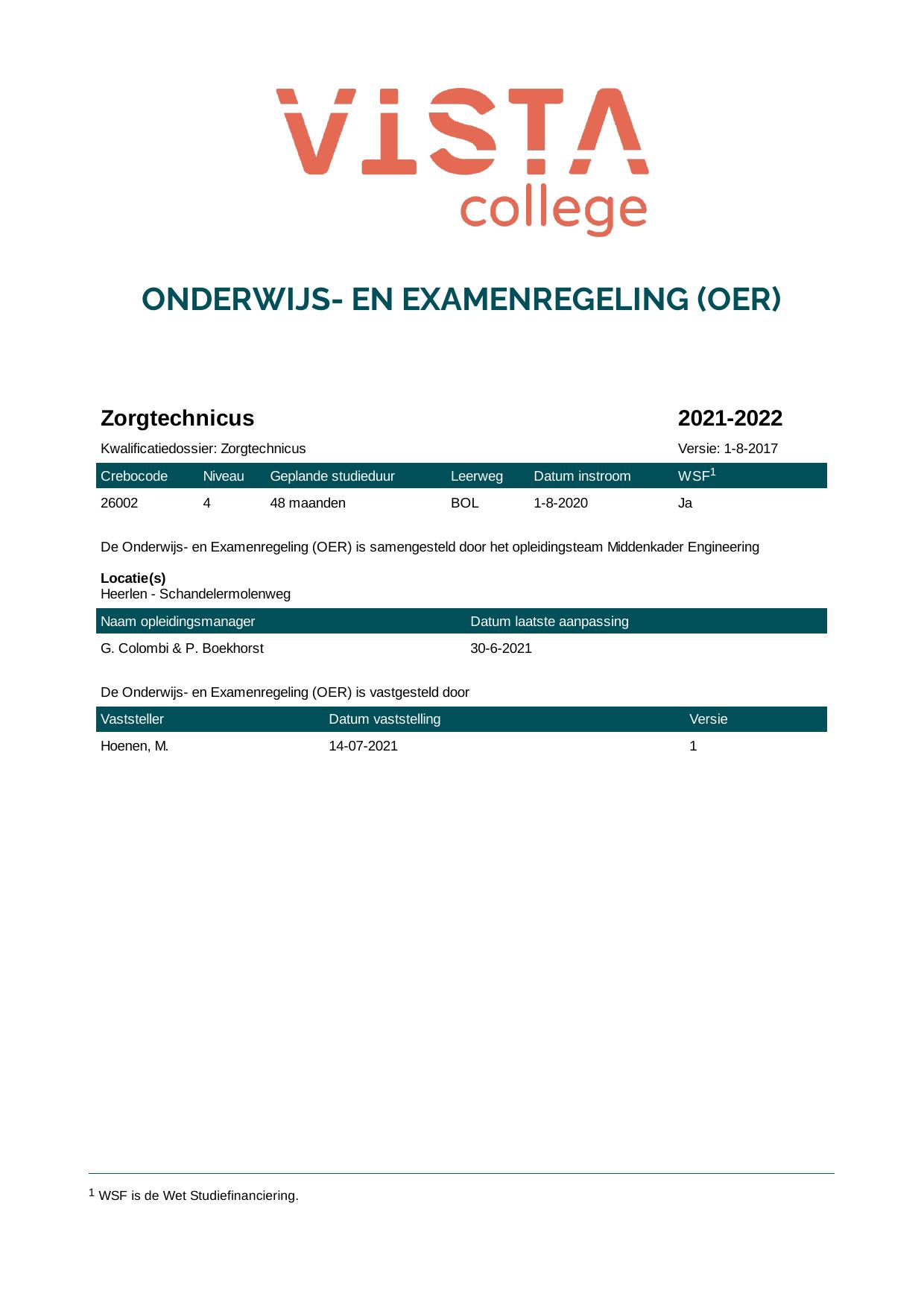 Zorgtechnicus 26002O1S in cohort 2021-2022