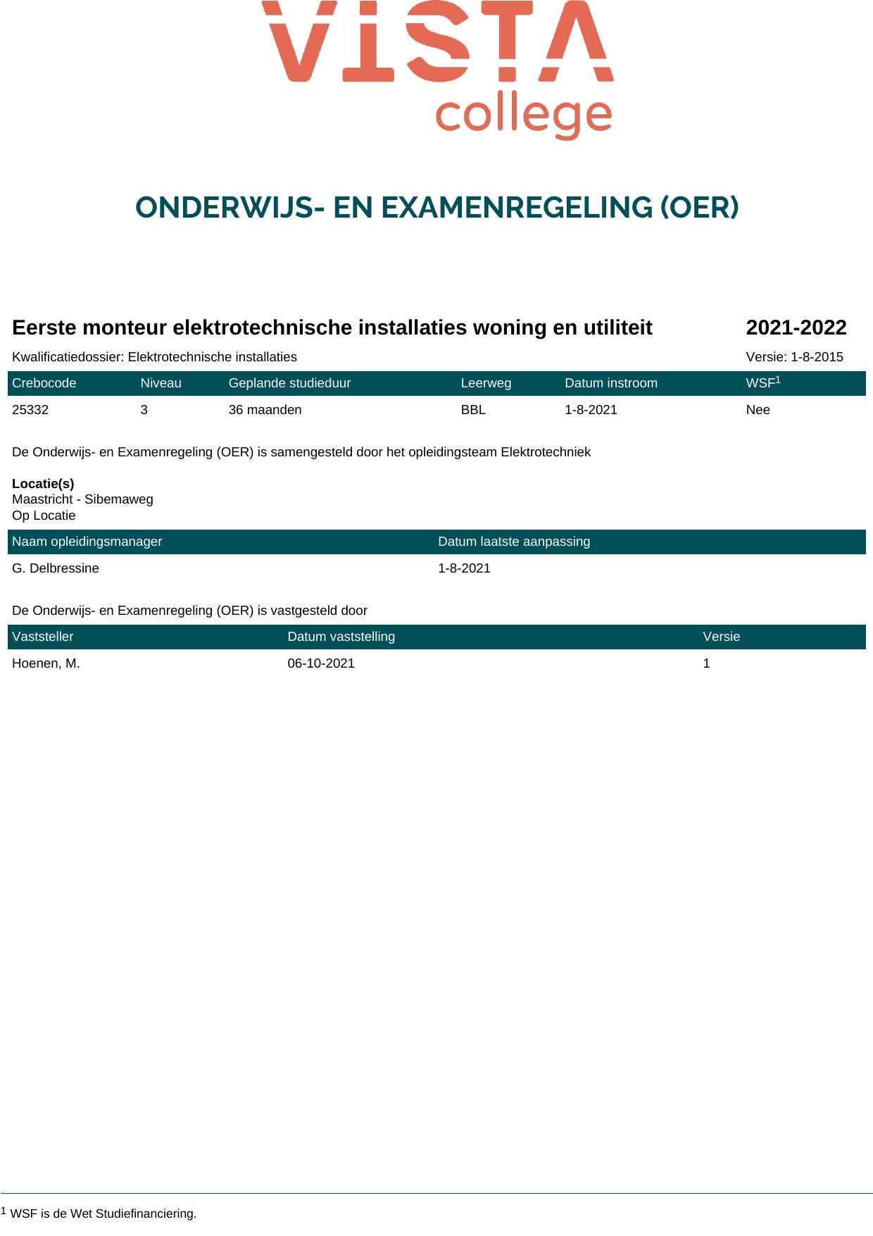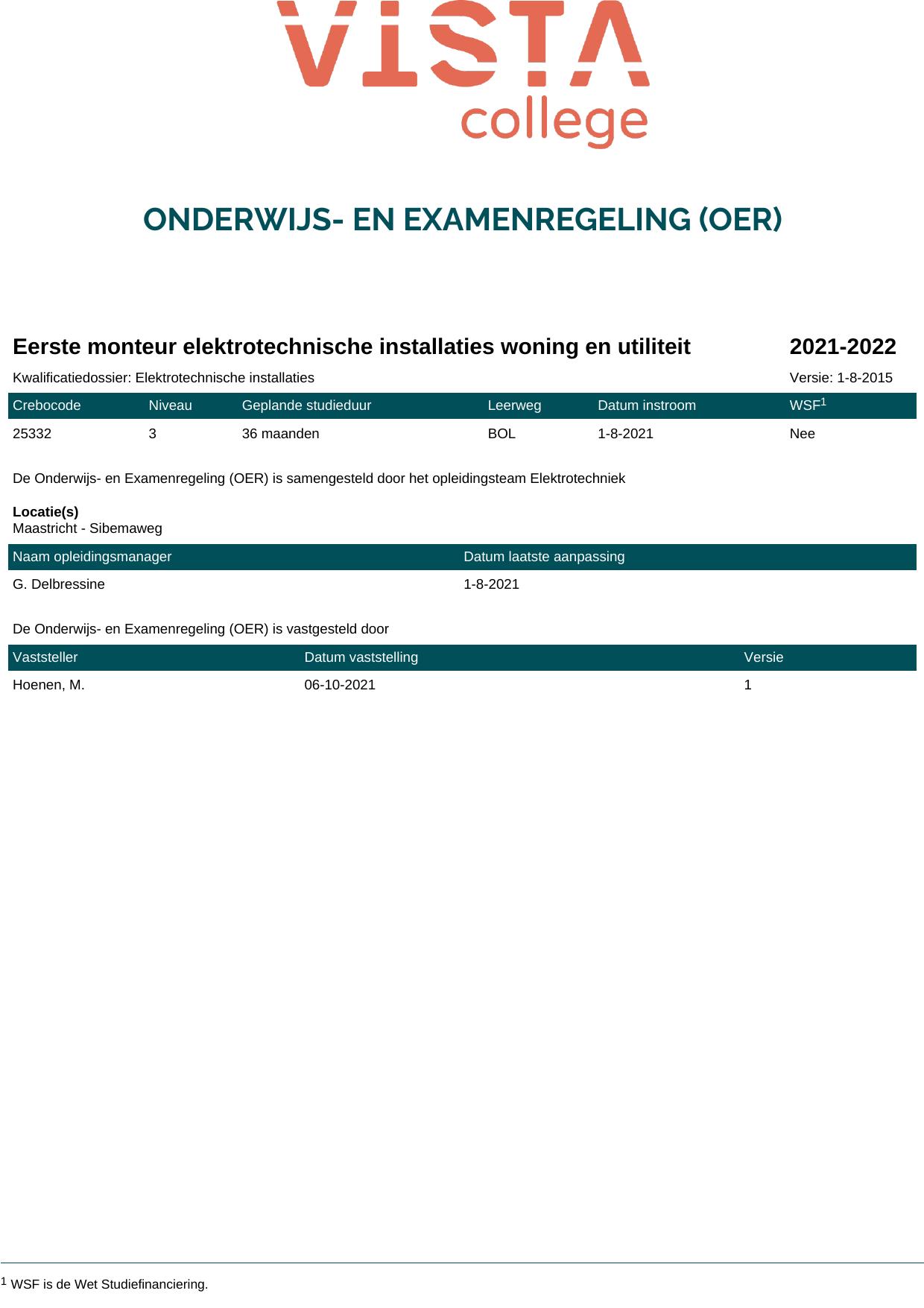 Eerste monteur elektrotechnische installaties woning en utiliteit 25332O1S in cohort 2021-2022