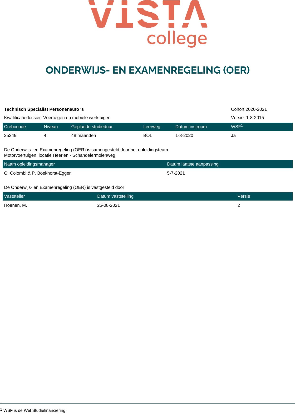 Technisch Specialist Personenauto 's 25249O1S in cohort 2020-2021