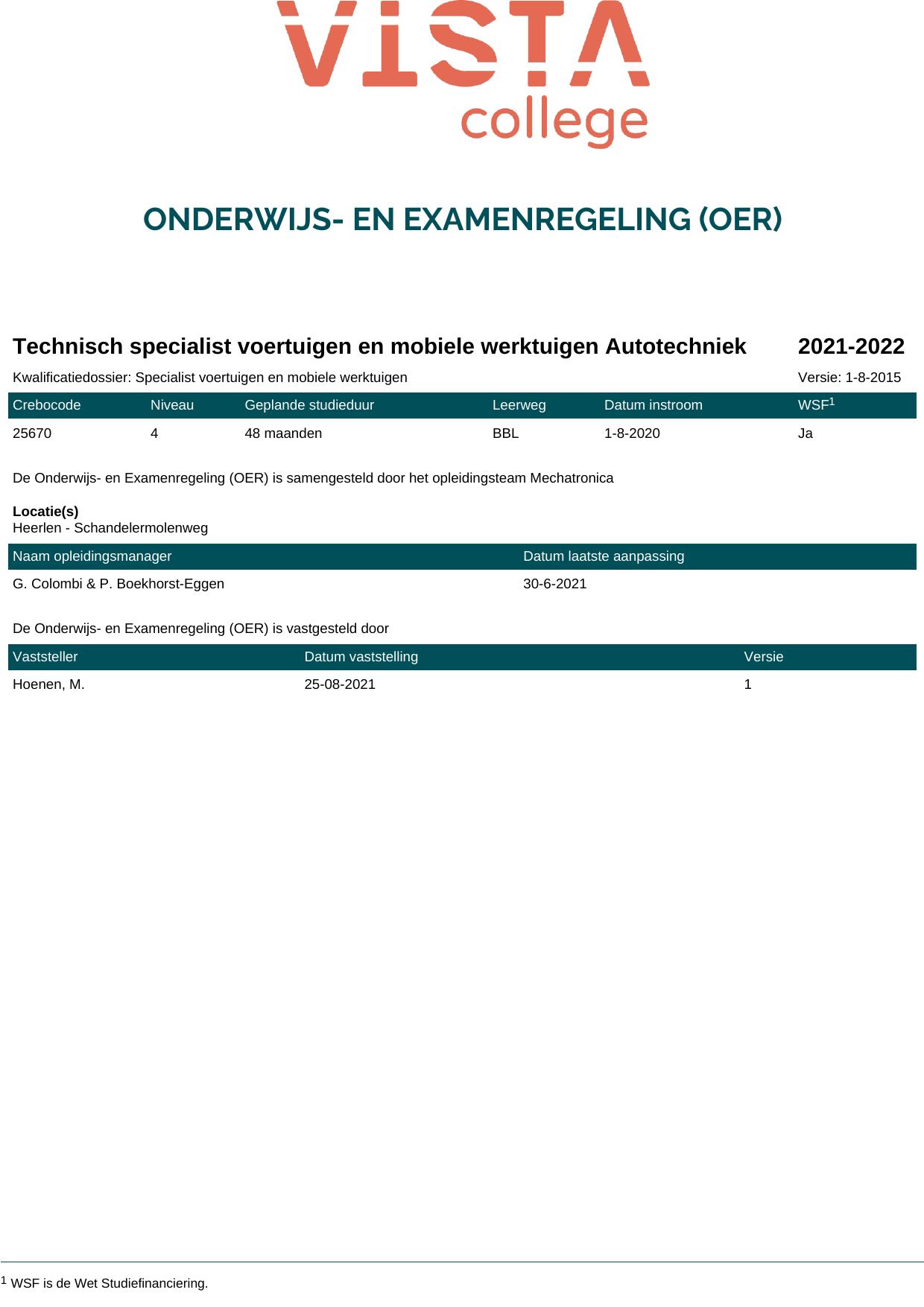 Technisch specialist voertuigen en mobiele werktuigen Autotechniek 25670O1S in cohort 2021-2022