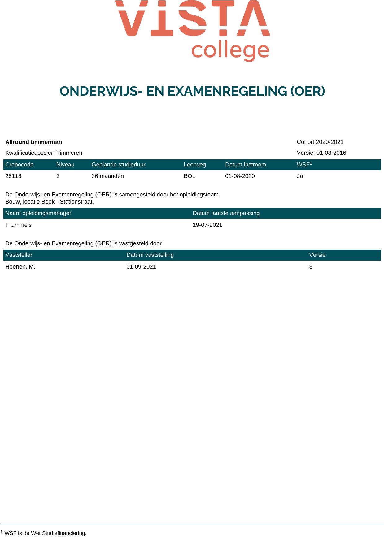 Allround timmerman 25118O1S in cohort 2020-2021