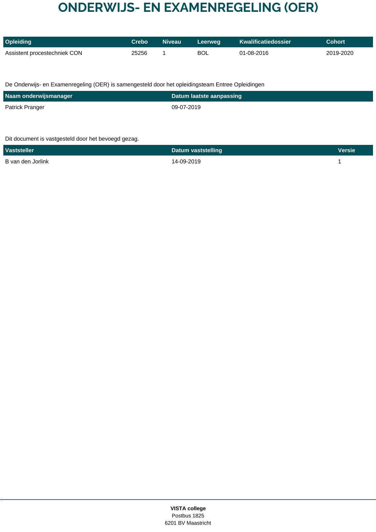 Assistent procestechniek 25256B1S in cohort 2019-2020