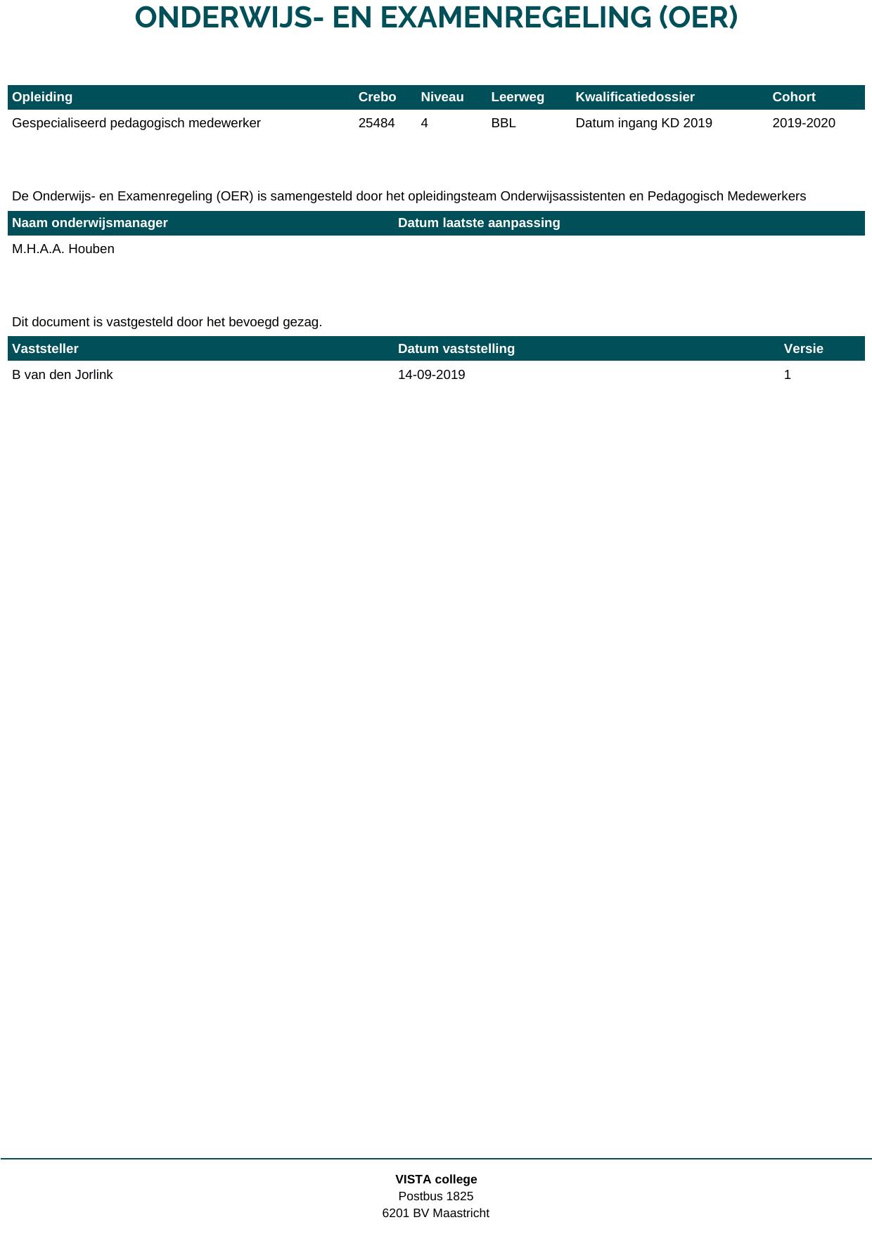 Gespecialiseerd pedagogisch medewerker 25484B1S in cohort 2019-2020