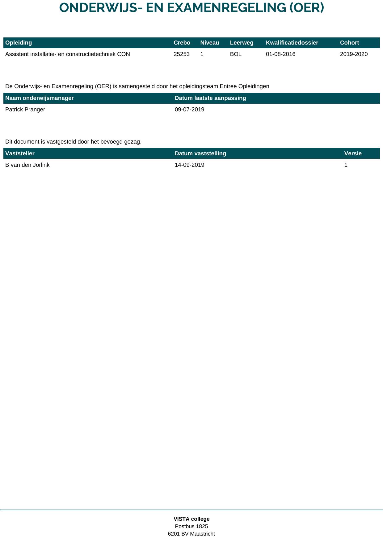 Assistent installatie- en constructietechniek CON 25253O1SC in cohort 2019-2020